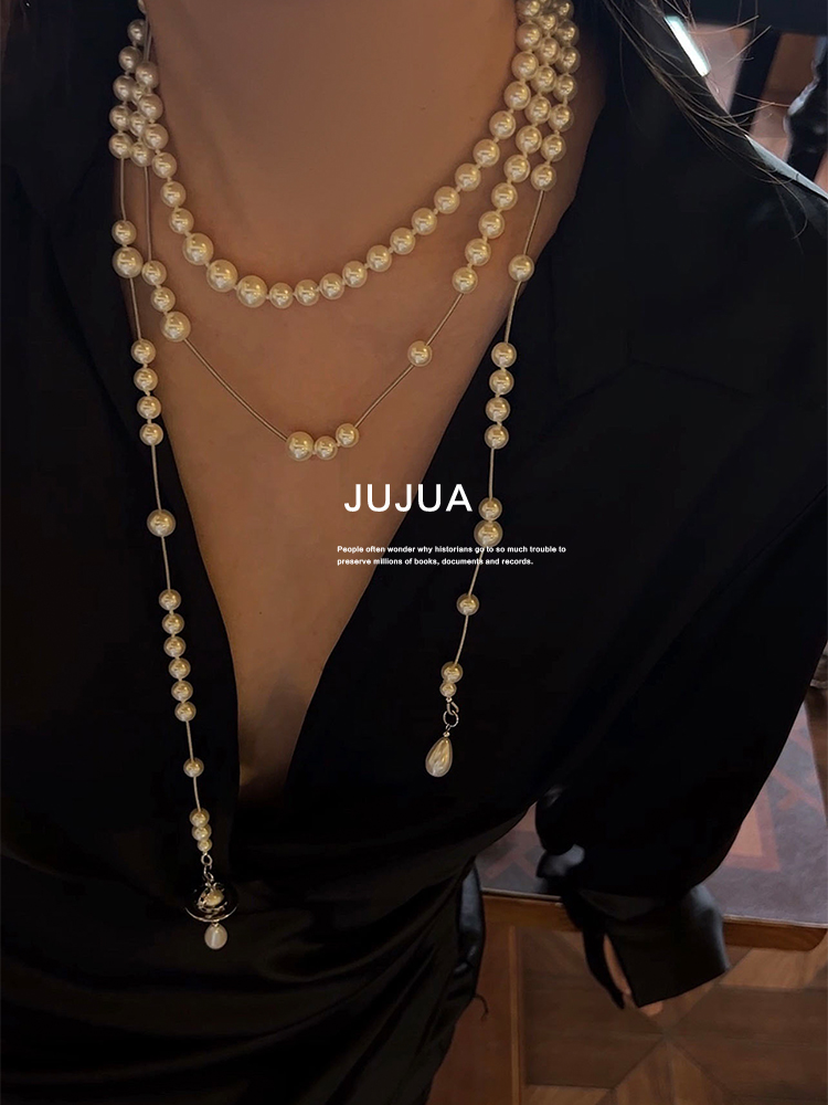 輕奢小眾疊戴多層長款珍珠項鏈復古毛衣鏈裝飾2023新款爆款高級感