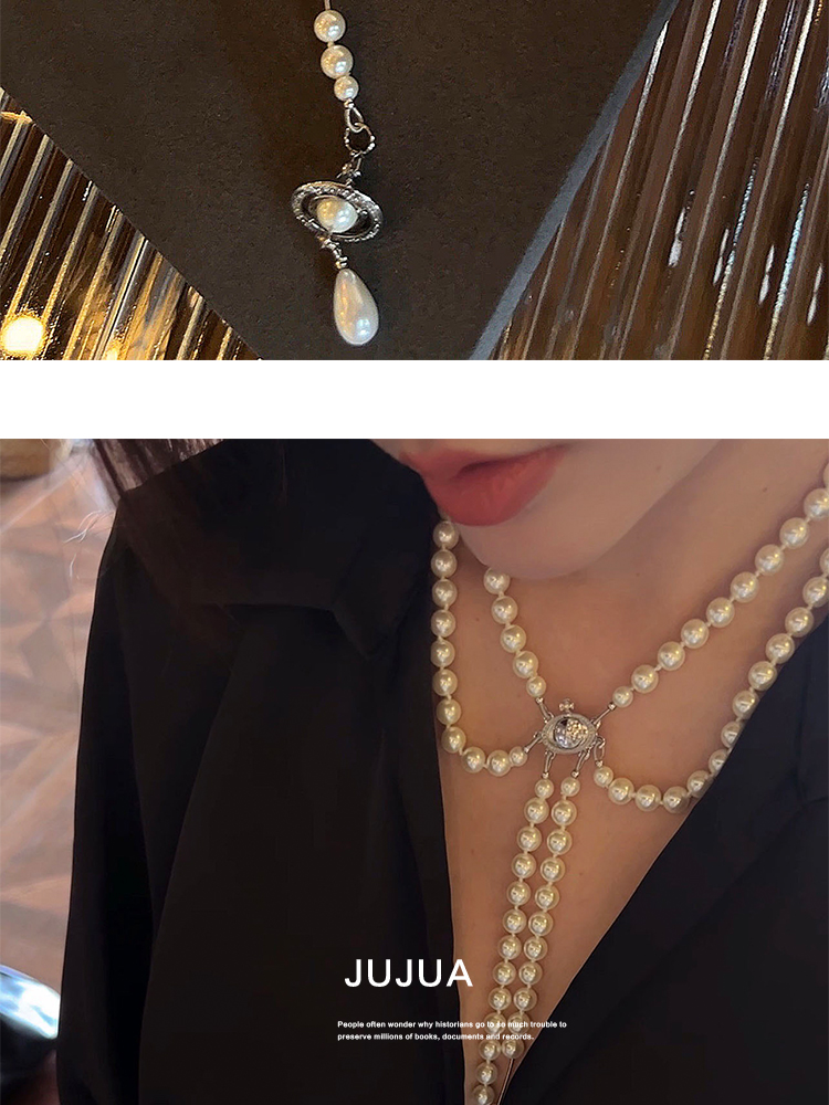 西太后土星球破碎珍珠項鏈女輕奢小眾多層疊戴正品毛衣鏈大氣高檔