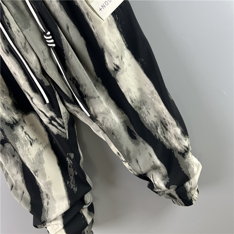 春夏百搭個性男寬松盤扣印花哈倫褲
