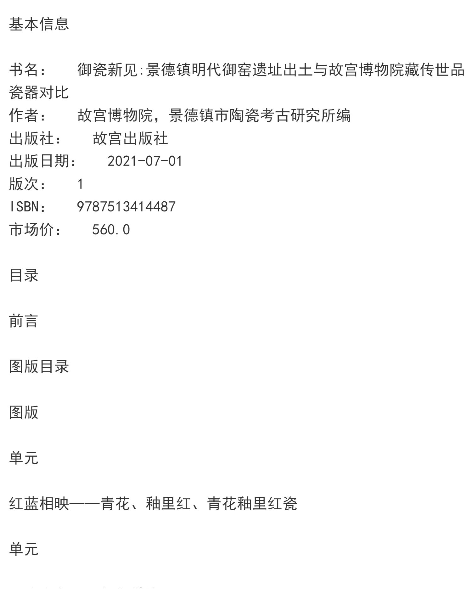 98¥ CZ3457 dbGpW04VpNf¥ https://m.tb.cn/h.56ZpMm0 故宮博物院藏與景德鎮明代御窯出土瓷器青花釉里紅青花釉顏色釉瓷彩繪瓷明代永樂宣德成化景德鎮御窯瓷器款識明代官窯遺址知識書籍 --------------------- 故宮博物院藏與景德鎮明代御窯出土瓷器青花釉里紅青花釉顏色釉瓷彩繪瓷明代永樂宣德成化景德鎮御窯瓷器款識明代官窯遺址知識書籍 --------------------- 【原售價】560.00元 【現售價】459元。