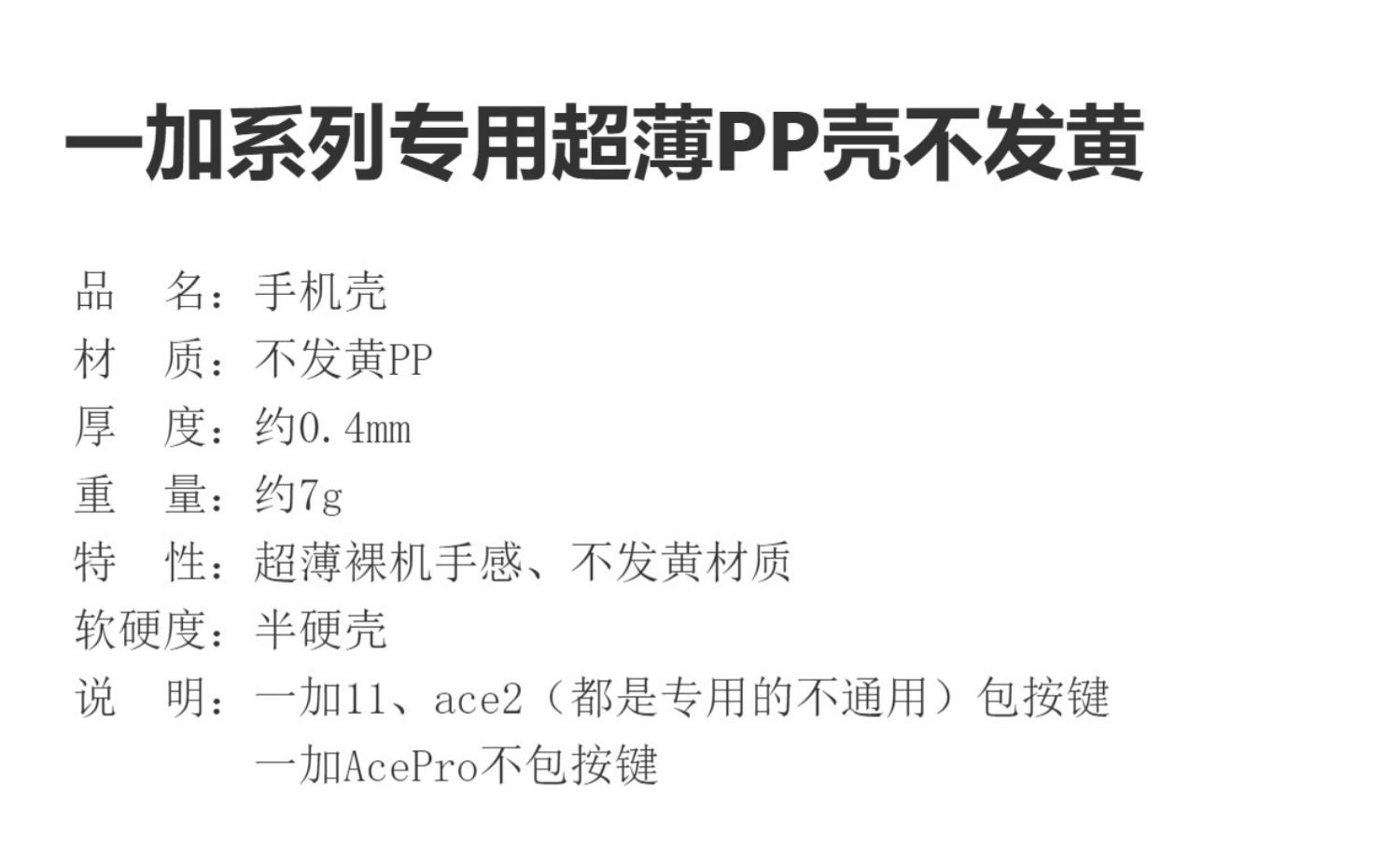 69¥ CZ0001 jMVQW1jV0HP¥ https://m.tb.cn/h.5hScNtJ 魔護衛 一加11超薄PP手機殼一加ace2透明不發黃全包磨砂防摔acepro透白大孔定制新款軟硬殼按鍵 --------------------- 魔護衛 一加11超薄PP手機殼一加ace2透明不發黃全包磨砂防摔acepro透白大孔定制新款軟硬殼按鍵 --------------------- 不發黃原材料 超薄超輕手感 --------------------- 【原售價】16.99元 【優惠券】2元 【券后價】14.99元。