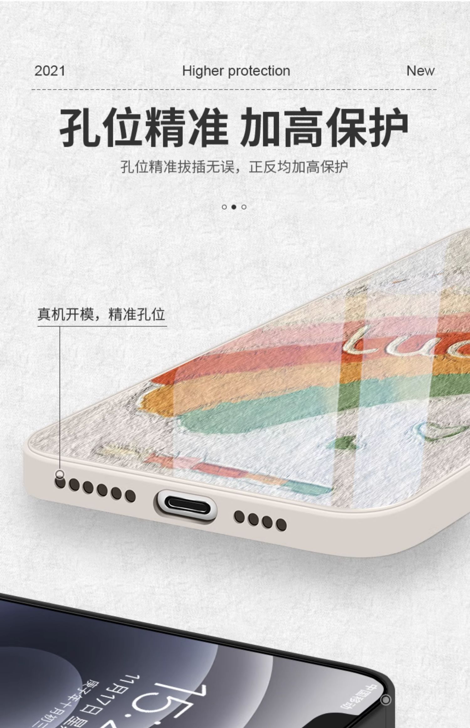 彩虹手機殼蘋果14pro適用iphone13情侶15max個性12pro創意mini玻璃xs油畫xr小眾11夏天x男7plus女8p套6s新款