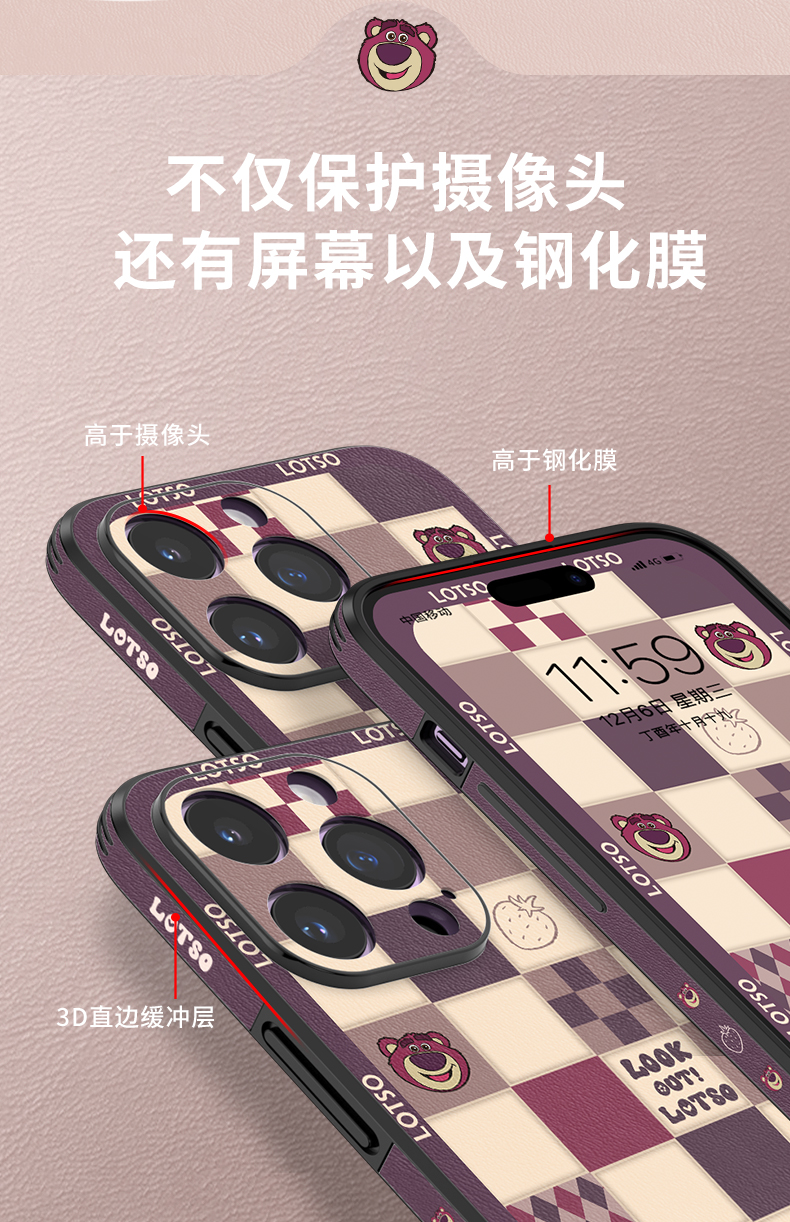 迪士尼適用蘋果14promax手機殼iPhone14新款13的12高級感11小眾xs小羊皮max女全包7防摔8p皮質15男格子草莓熊