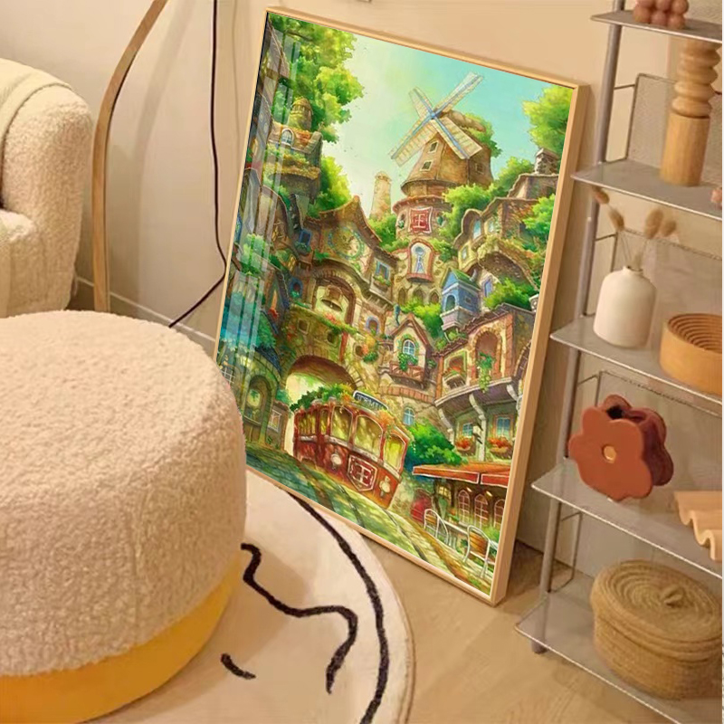 卡通童話小屋十字繡2023新款客廳小件玄關臥室簡約手工刺繡大格棉