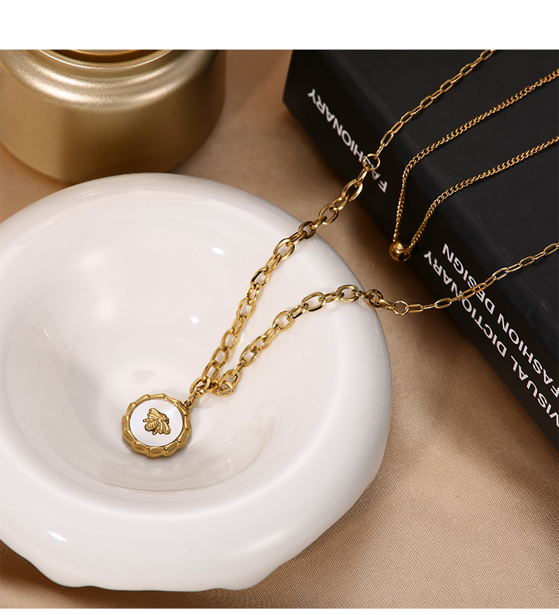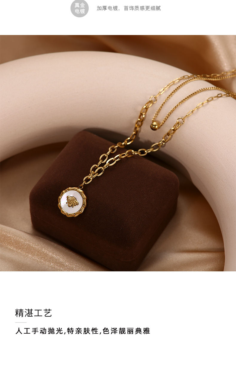 法式輕奢氣質雙層小蜜蜂貝母吊墜不掉色高級感鈦鋼項鏈毛衣鏈潮女
