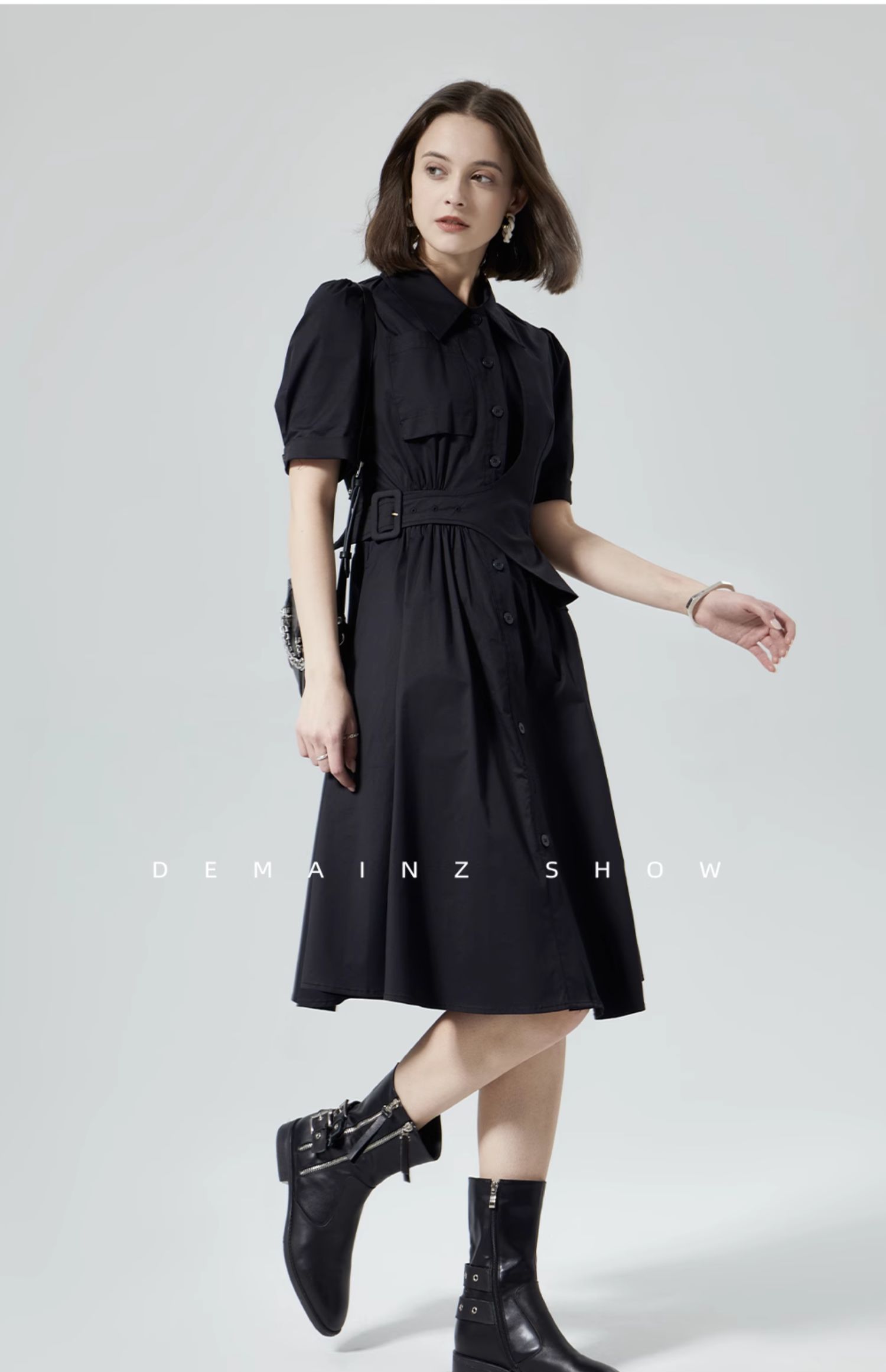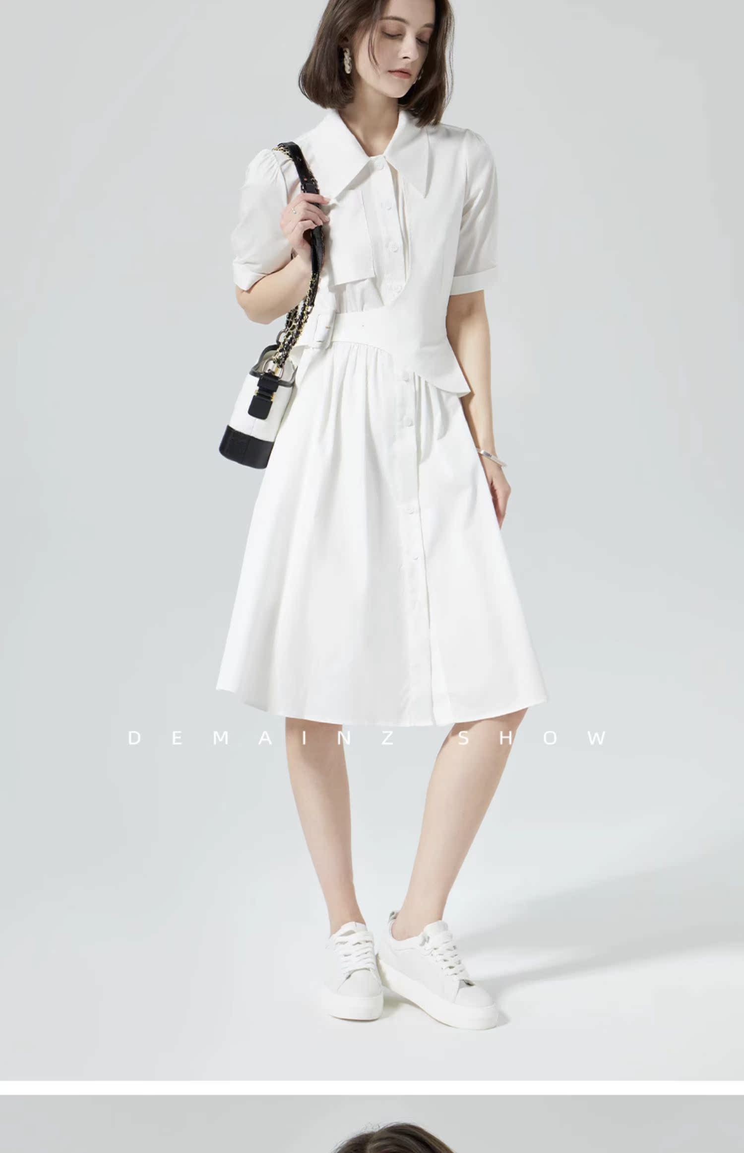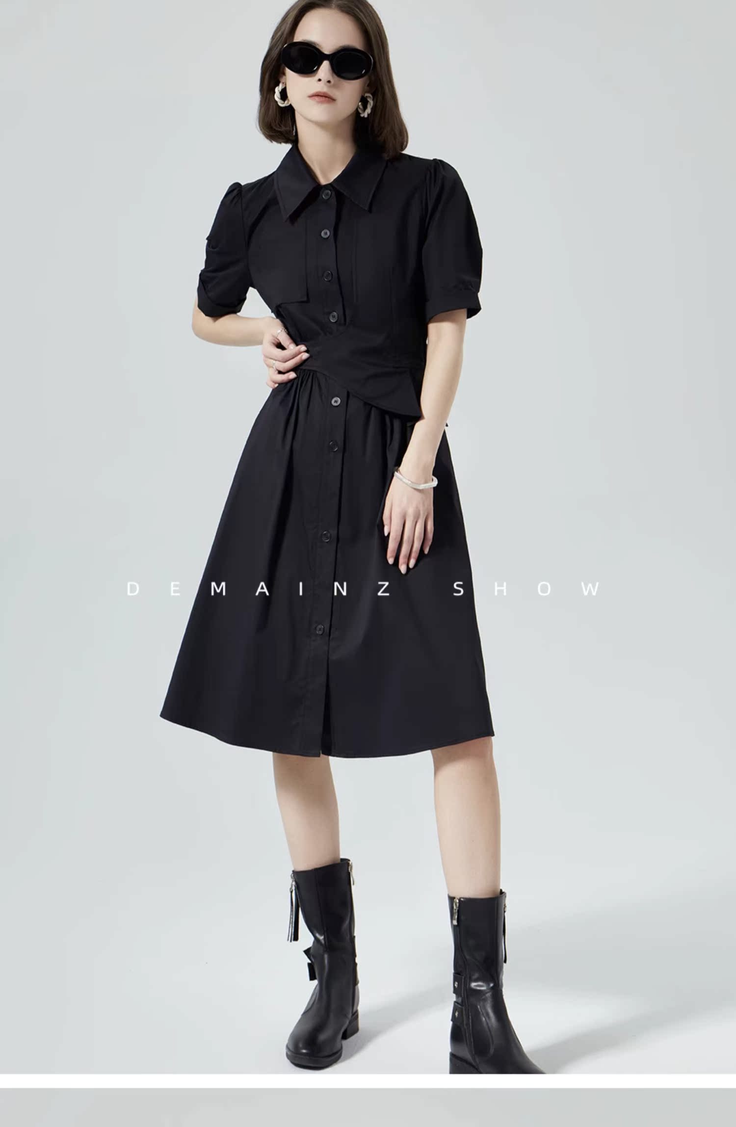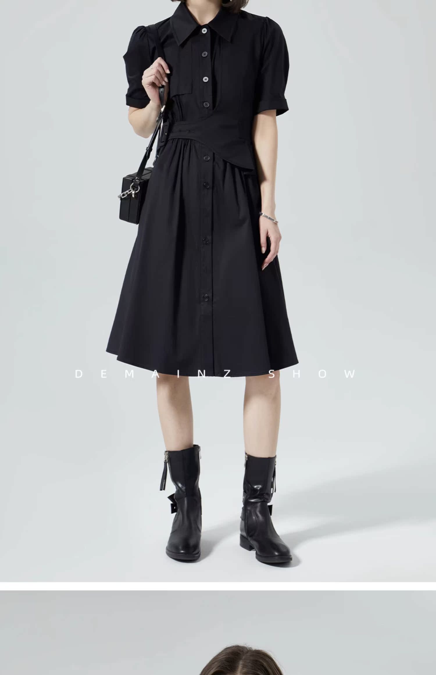 DEMAINZ地縵通勤不規則收腰抽褶a字連衣裙2023年夏季新款泡泡袖