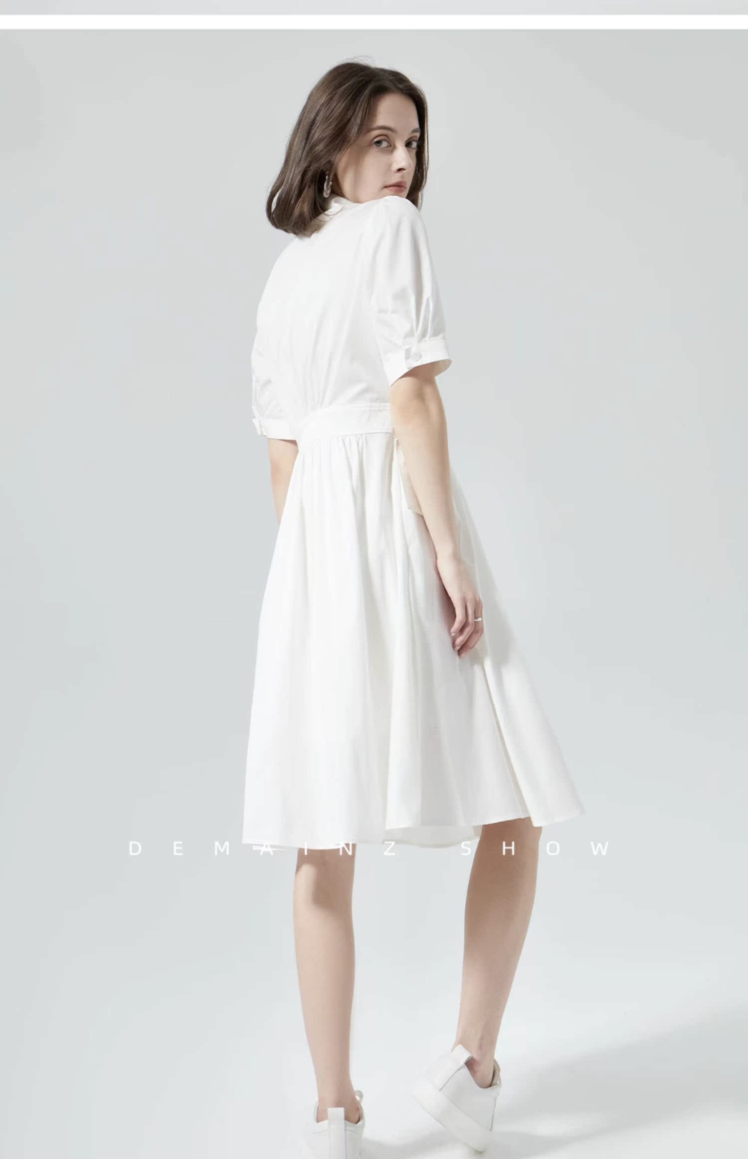 DEMAINZ地縵圓領短袖修身連衣裙夏季2023女套頭法式簡約純棉新款