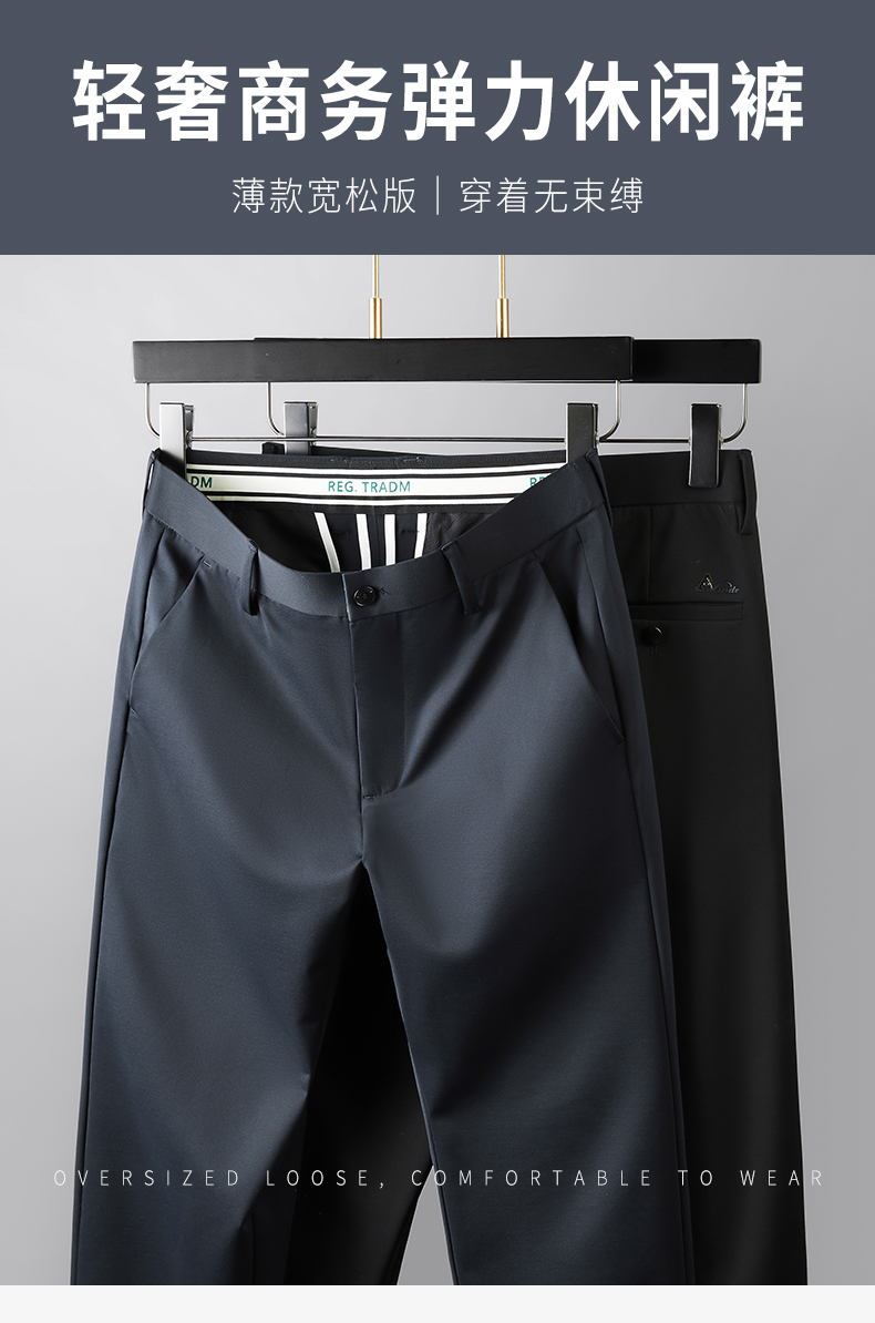 輕奢夏季薄款大碼男裝彈力直筒西褲大號肥佬純色索羅娜涼感休閑褲
