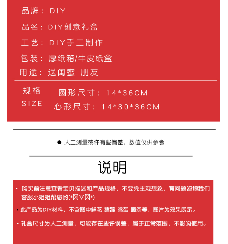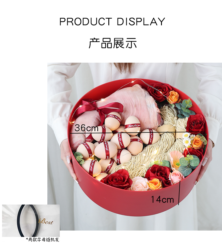 創意禮物diy手工包裝材料豬蹄雞蛋面條鮮花早生貴子高檔圓形禮盒