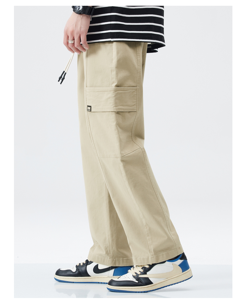 男士伐木工裝褲男直筒寬松卡其色褲子男款休閑百搭長褲秋季直筒褲