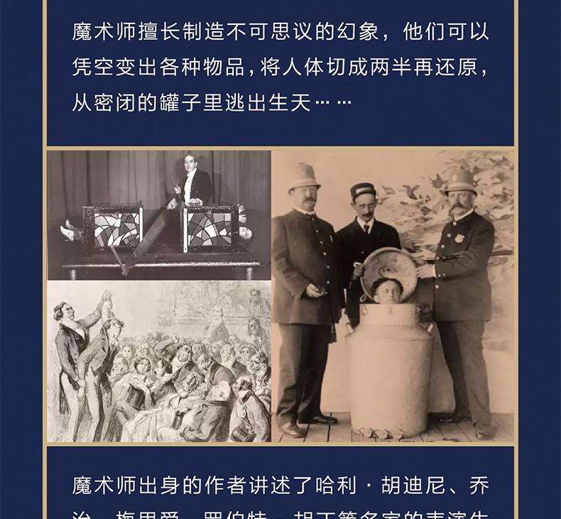 魔術師同樣擅長制造不可思議的幻象,他們可以憑空變出各種物品,將人體切成兩半再還原,從密閉的罐子里逃出生天……魔術師出身的作者講述了哈利·胡迪尼、喬治·梅里愛、羅伯特-胡丁等名家的表演生涯,勾勒出現代魔術的發展圖景。這些“騙術大師”善于運用敏捷手法和有意誤導將自己塑造成“超能力者”,卻并非為了“愚弄”觀眾,相反,他們往往是通靈騙局的揭露者,會以自己的專業技巧拆穿靈媒的謊言和把戲。