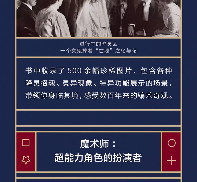降靈會、磁力催眠、亡靈傳信、亡魂現身……18世紀以來的靈媒術士所打造的幻覺異世界,是傳統的神秘主義、宗教習俗和各種偽科學實踐相結合的產物,而人們之所以被欺騙乃至自我欺騙,往往是出于對“親眼見證神跡”的渴望。書中收錄了500余幅珍稀圖片,包含各種降靈招魂、靈異現象、“特異功能”展示的場景,帶領讀者身臨其境地感受數百年來的騙術奇觀。