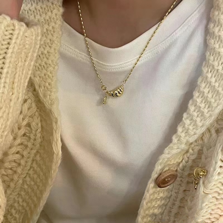 QUEENSKY 博主Fever同款牛角包項鏈冷淡風高級感氣質百搭鎖骨鏈女