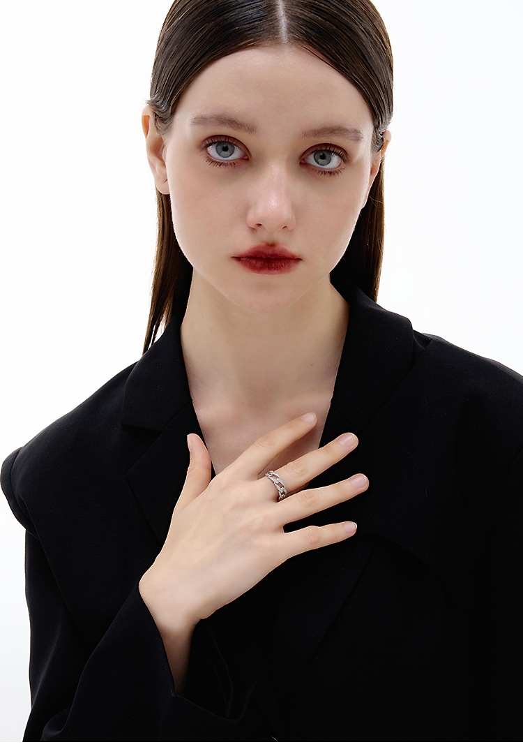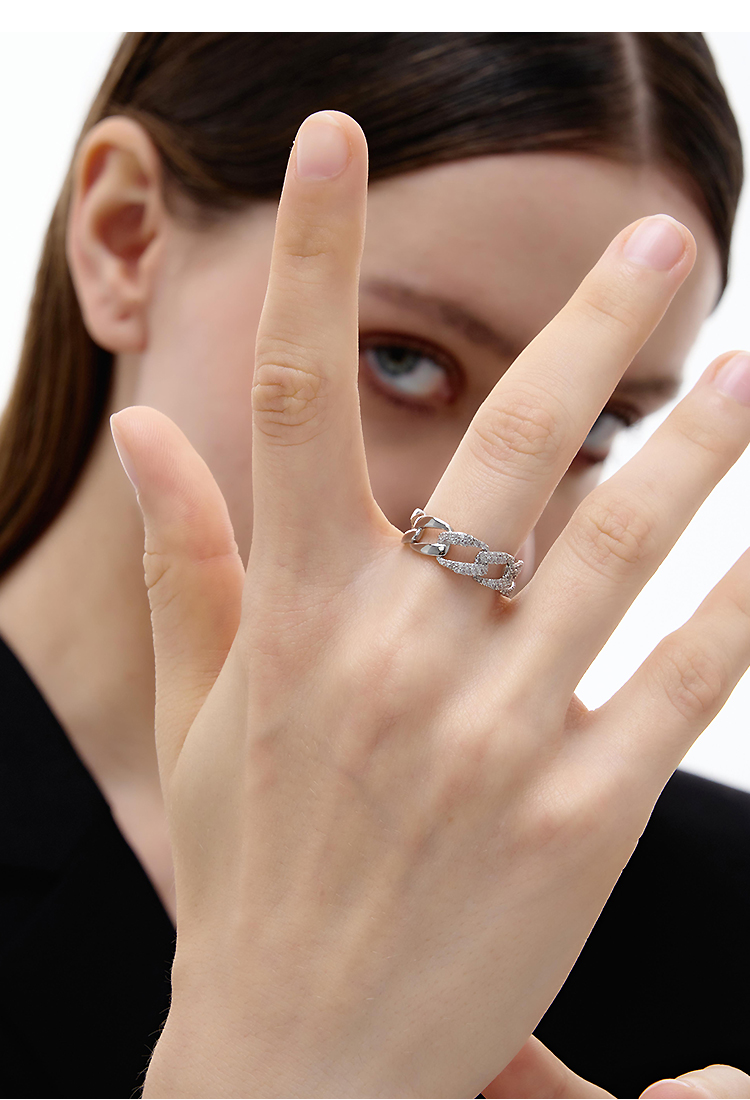 KETTLE SMILE環環相扣戒指銅鍍白金小眾高級感時尚簡約百搭首飾