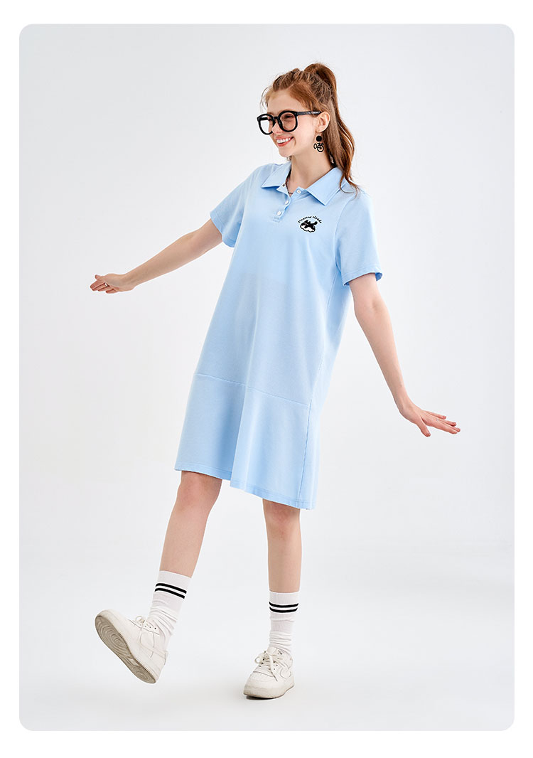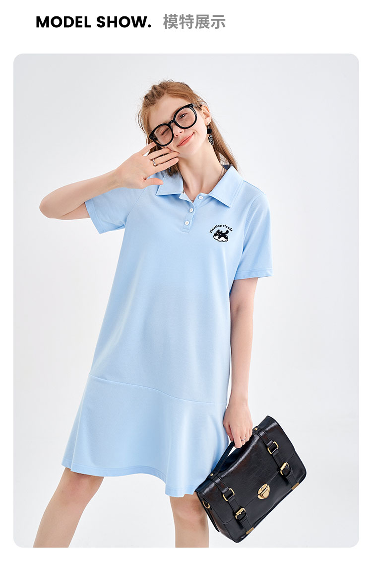 【香草】a02通勤polo連衣裙2023夏新品寬松慵懶A字裙元氣減齡裙子