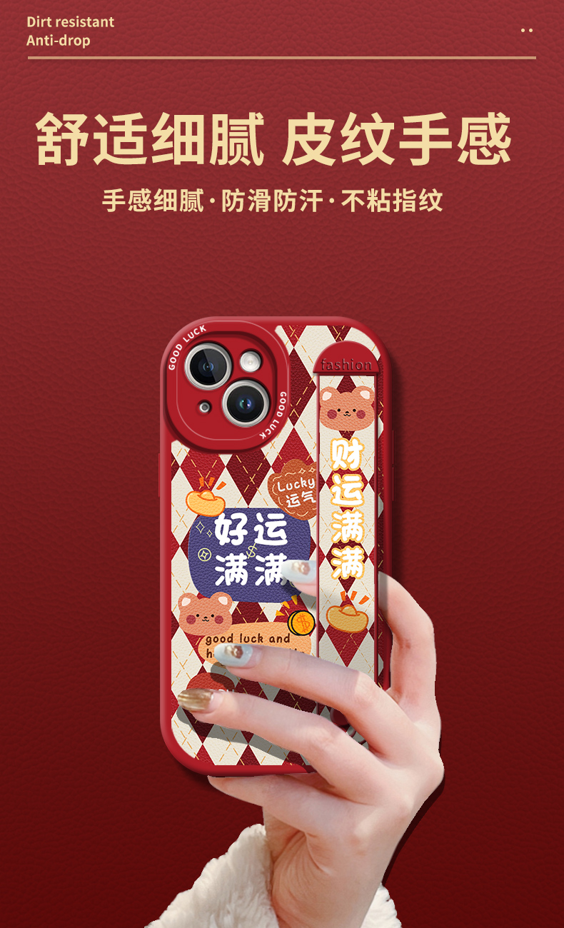 手腕帶適用蘋果14手機殼iPhone13promax新款12好運滿滿11保護套x高級感菱格xsmax小眾xr全包8plus防摔6女7por