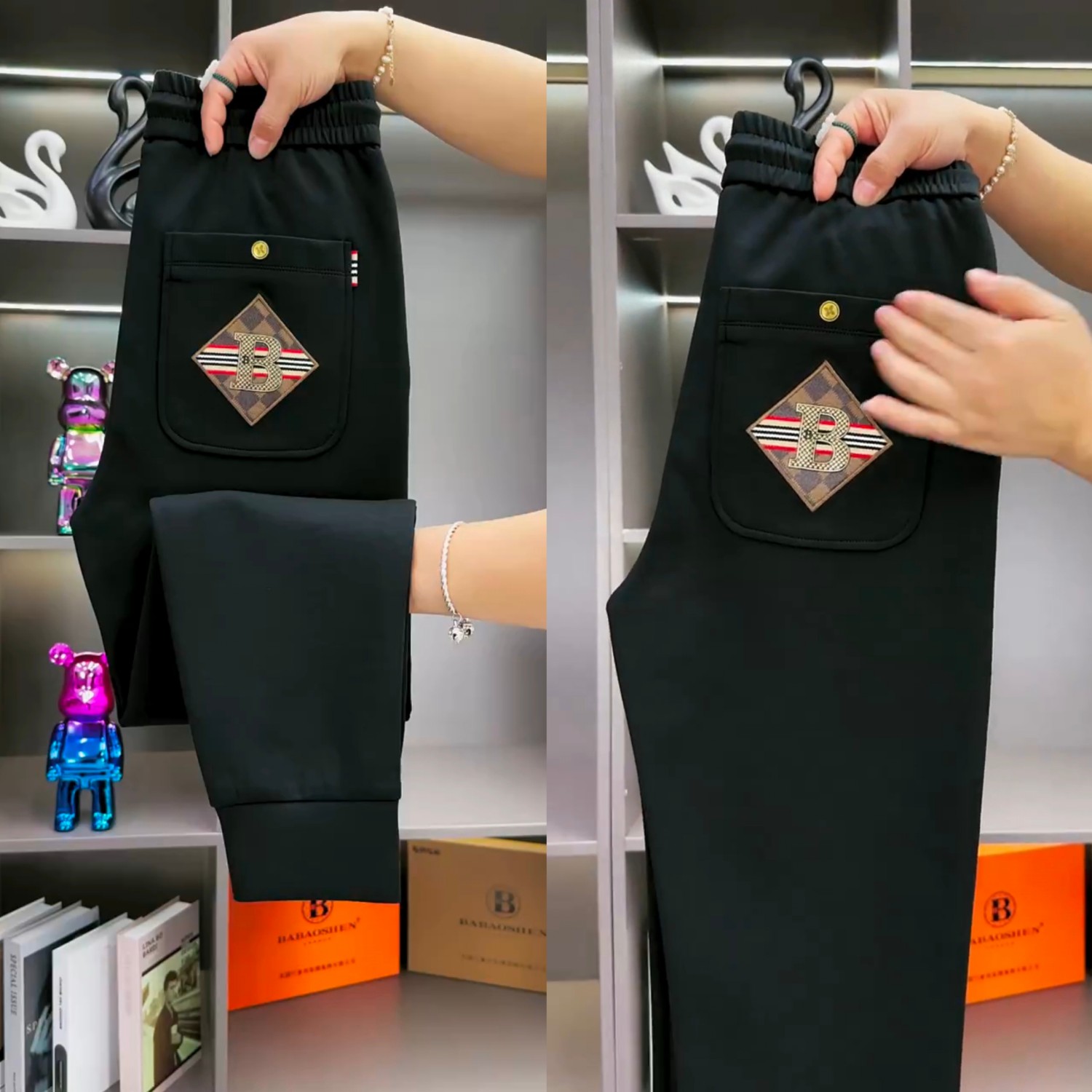 2023夏季新品男士休閑褲重工燙膜繡花時尚修身舒適男褲高級感潮