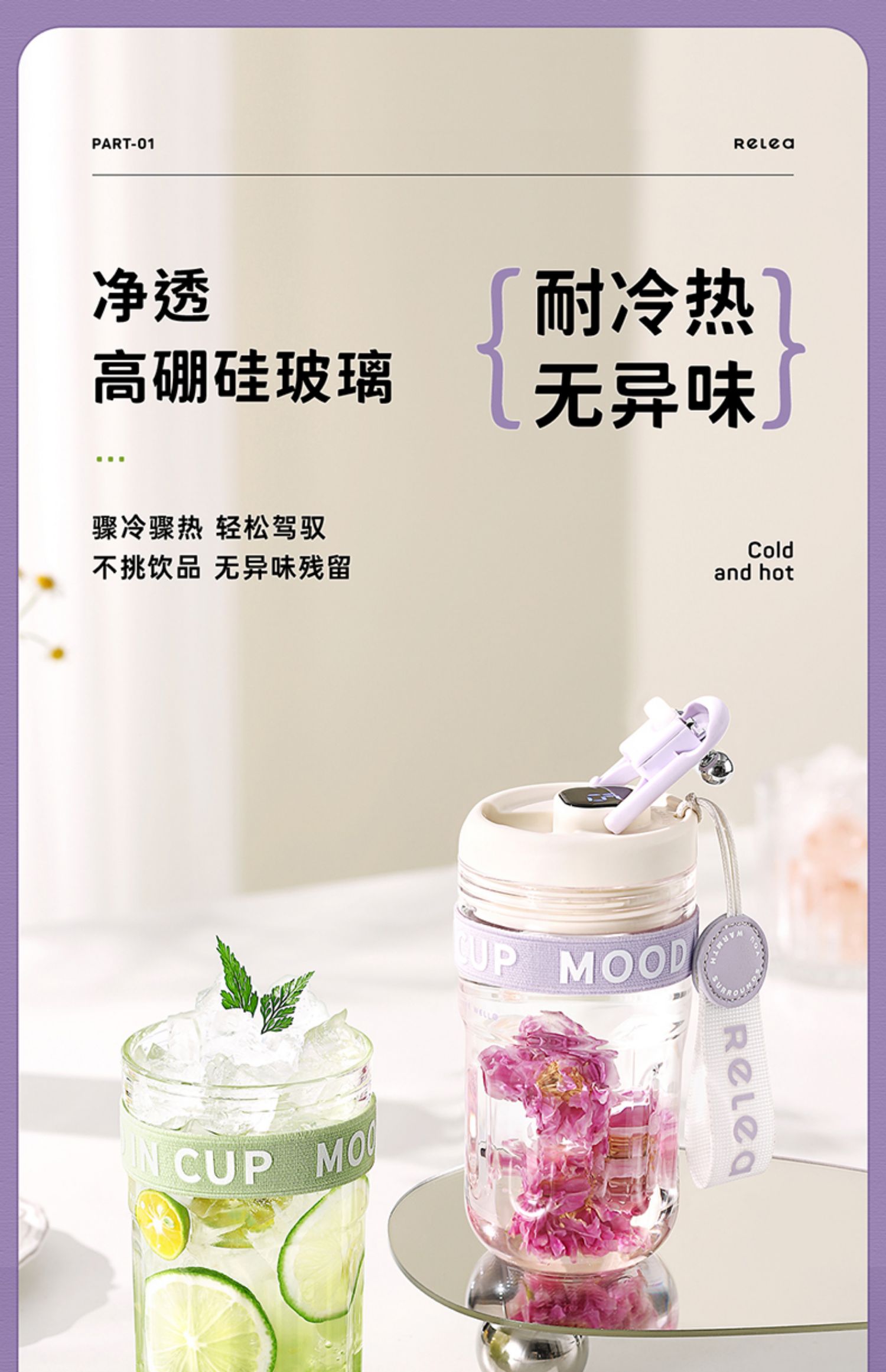 物生物玻璃杯女高顏值水杯男家用智能顯溫高檔便攜透明泡茶杯子夏