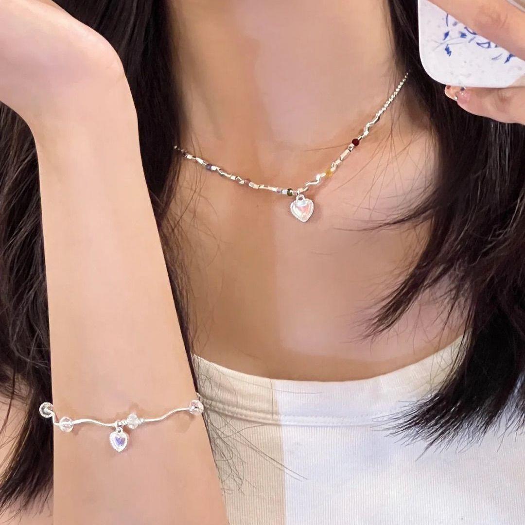 螢火之森愛心月光石項鏈手鏈串珠清透少女溫柔小眾ins風2023新款