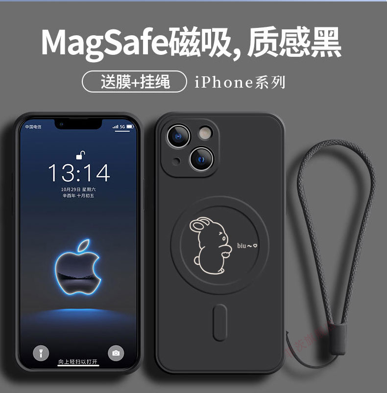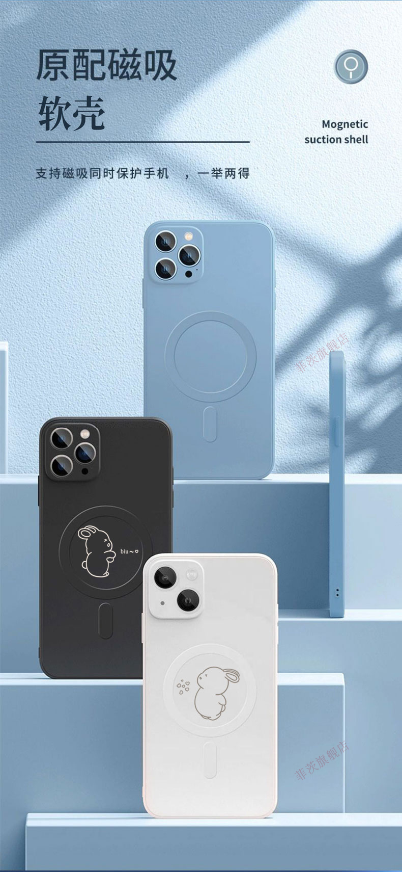 菲茨 簡約線條兔子磁吸適用iPhone14Promax手機殼13無線充XR蘋果11創意magsafe磨砂男8Plus防摔se2情侶mini女
