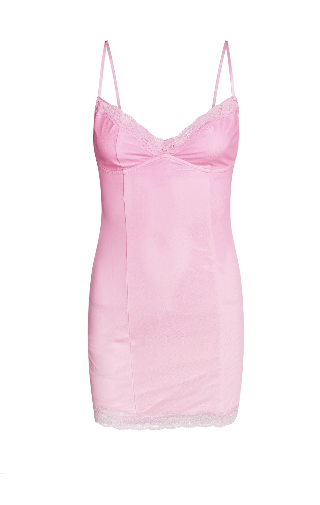 I.AM.GIA歐美性感辣粉色漸變蕾絲邊緊身吊帶短裙包臀裙棉質