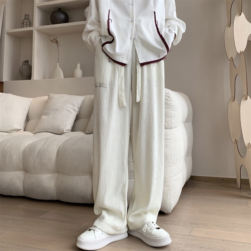 冰絲褲子男士夏季薄款肌理感寬松直筒闊腿褲美式潮牌男生休閑長褲