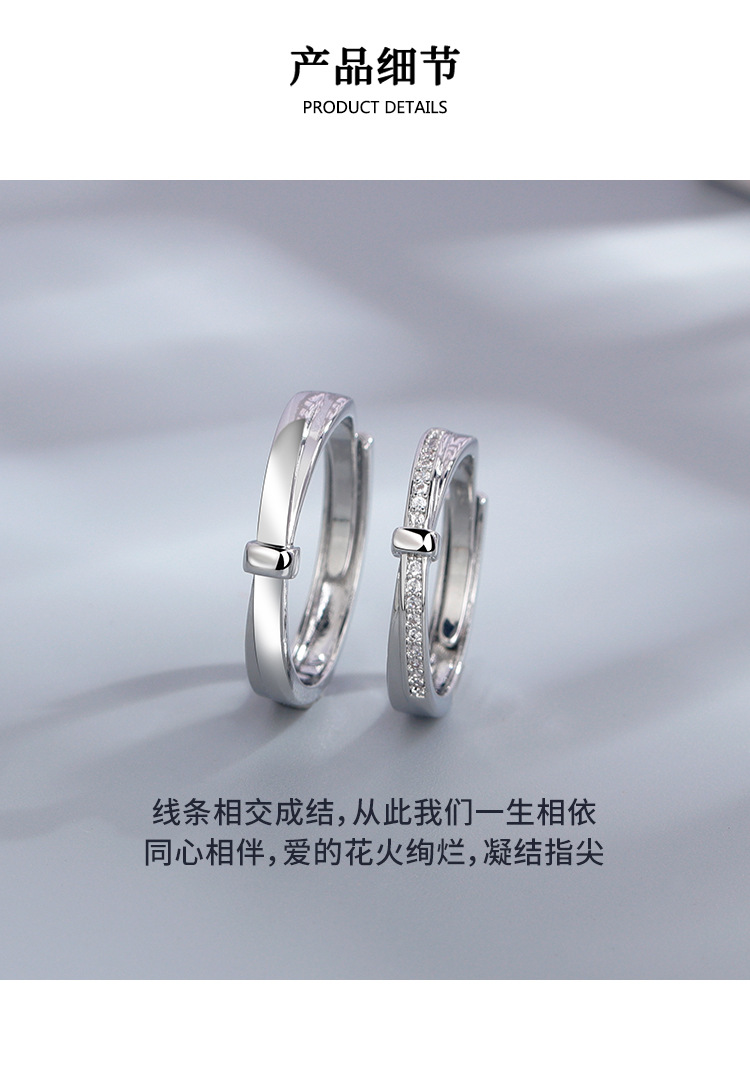 純銀結緣情侶戒指男女小眾簡約交織開口指環時尚鑲鉆莫比烏斯對戒