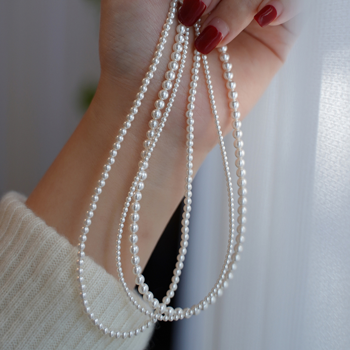 施家極細珍珠項鏈女2023年新款潮輕奢小眾鎖骨鏈女時尚小米珠頸鏈