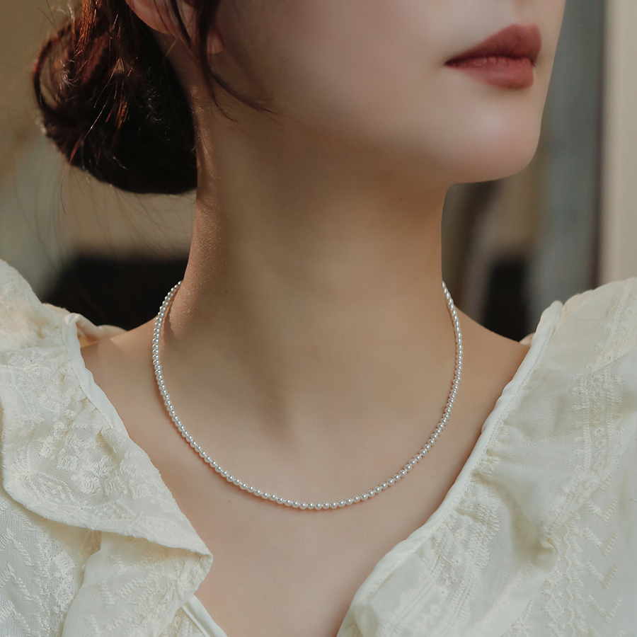 施家極細珍珠項鏈女小眾設計感高級氣質百搭個性頸鏈小米珠鎖骨鏈