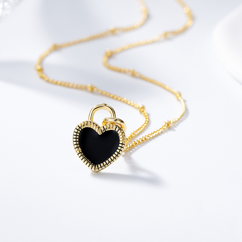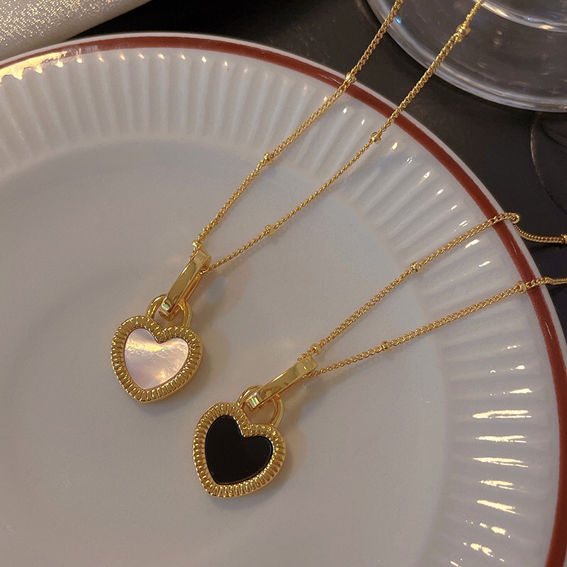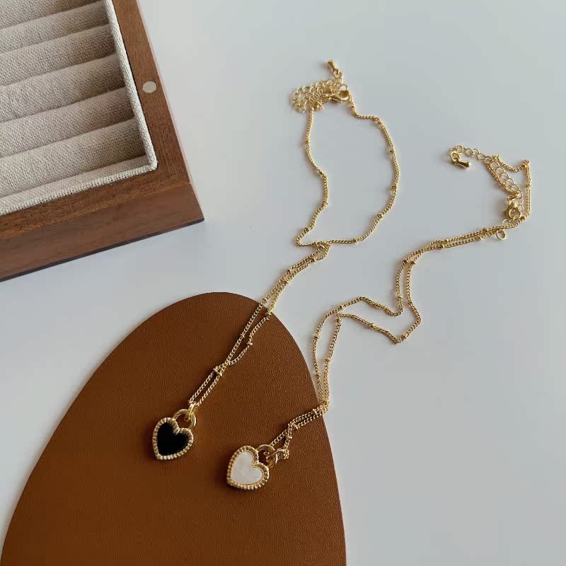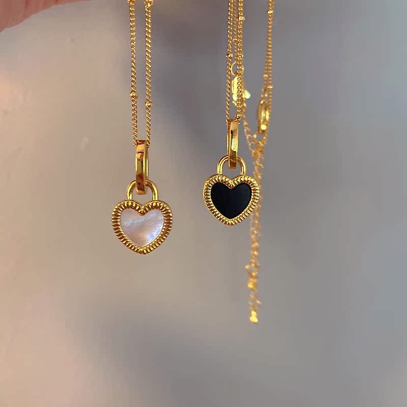 法式輕奢氣質雙面黑白滴釉愛心項鏈女ins潮高級感小眾設計鎖骨鏈