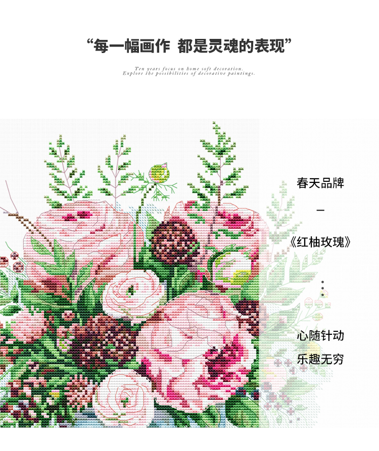 北歐奶油風十字繡2023新款客廳線繡牡丹花卉臥室小畫簡約溫馨刺繡