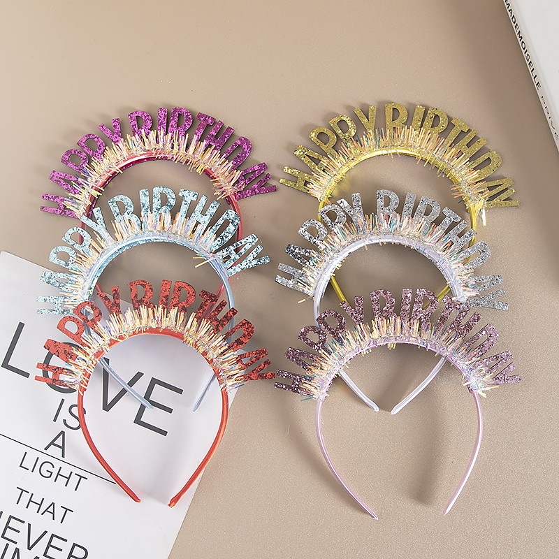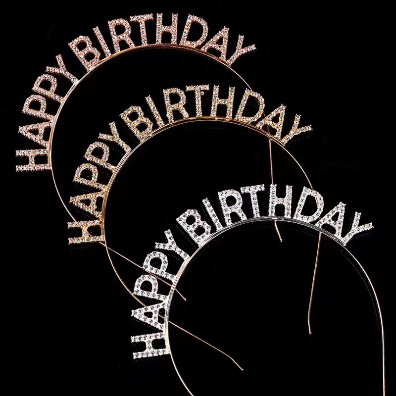 彩色生日合金發箍Happybirthday兒童成人生日帽派對拍照道具裝扮