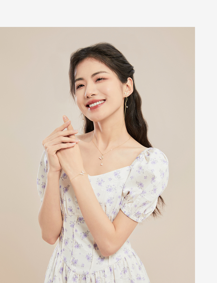三福項鏈女粉晶蝴蝶珍珠輕奢小眾高級感設計感頸鏈飾品2023新款