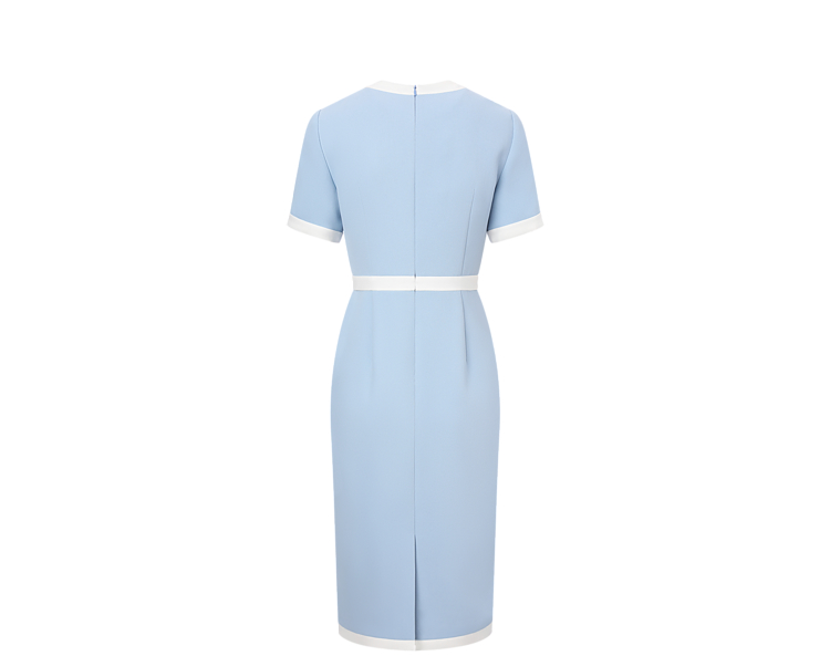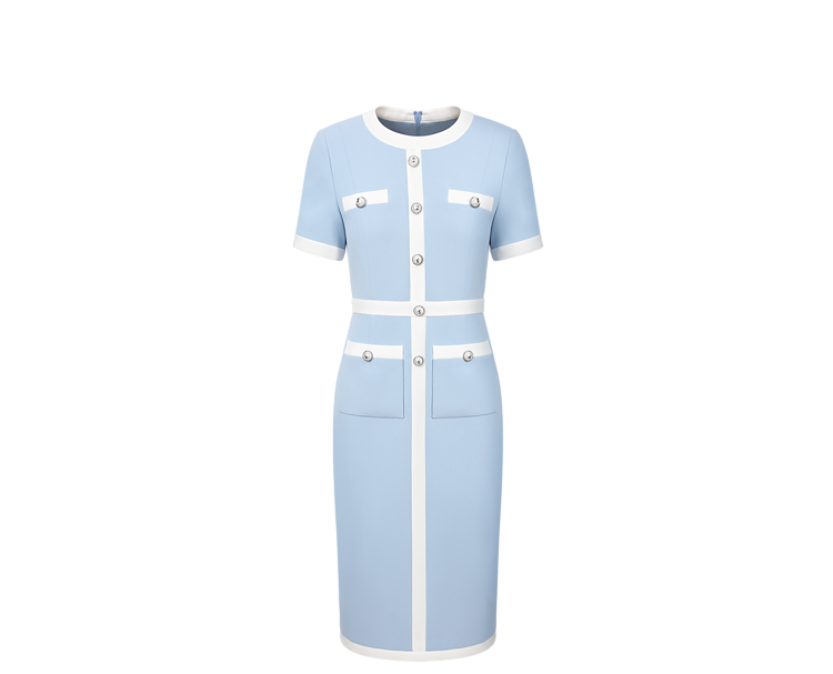 歌中歌2022夏季新款通勤拼色高級商務口袋圓領連衣裙 5C62205340