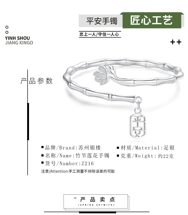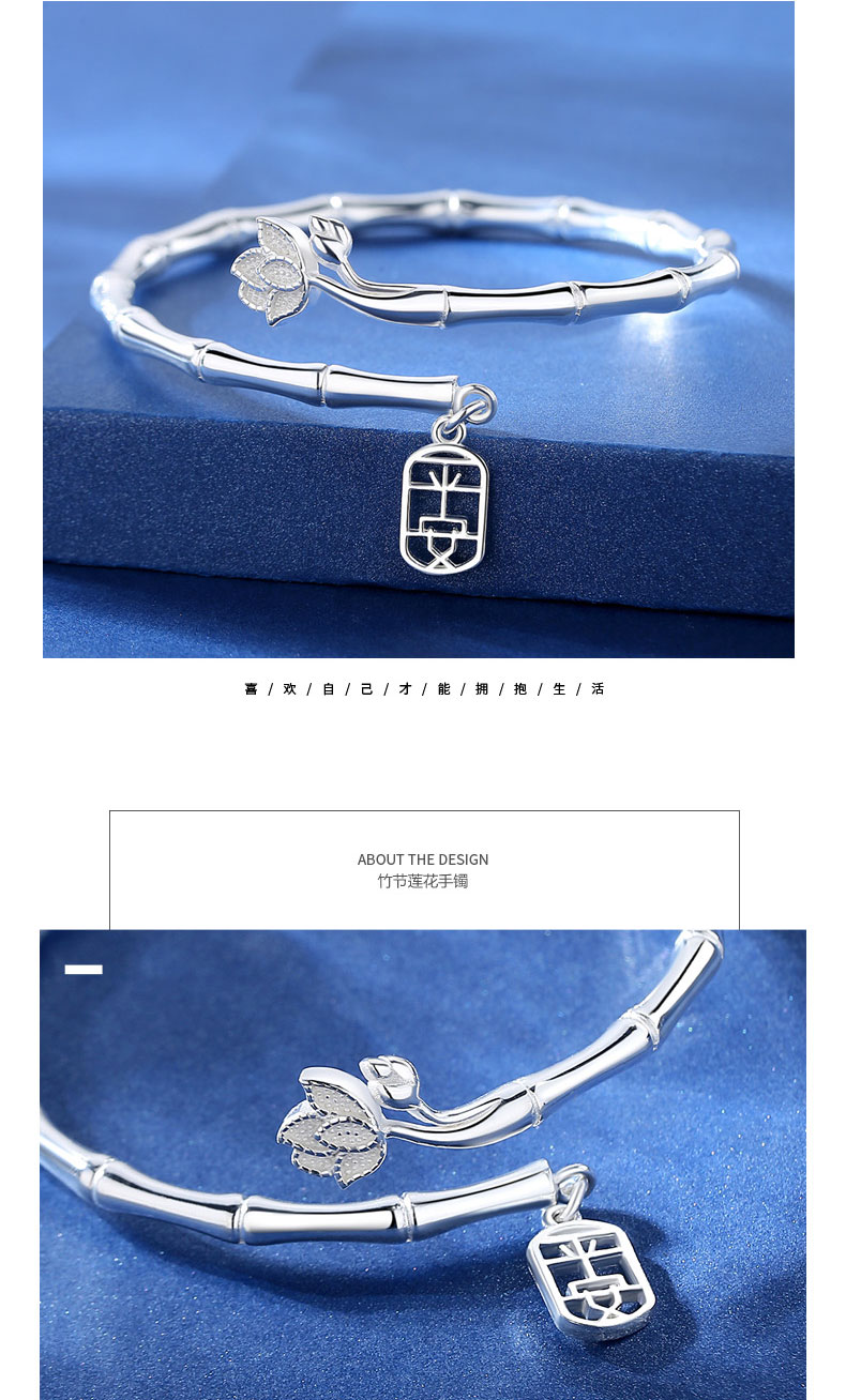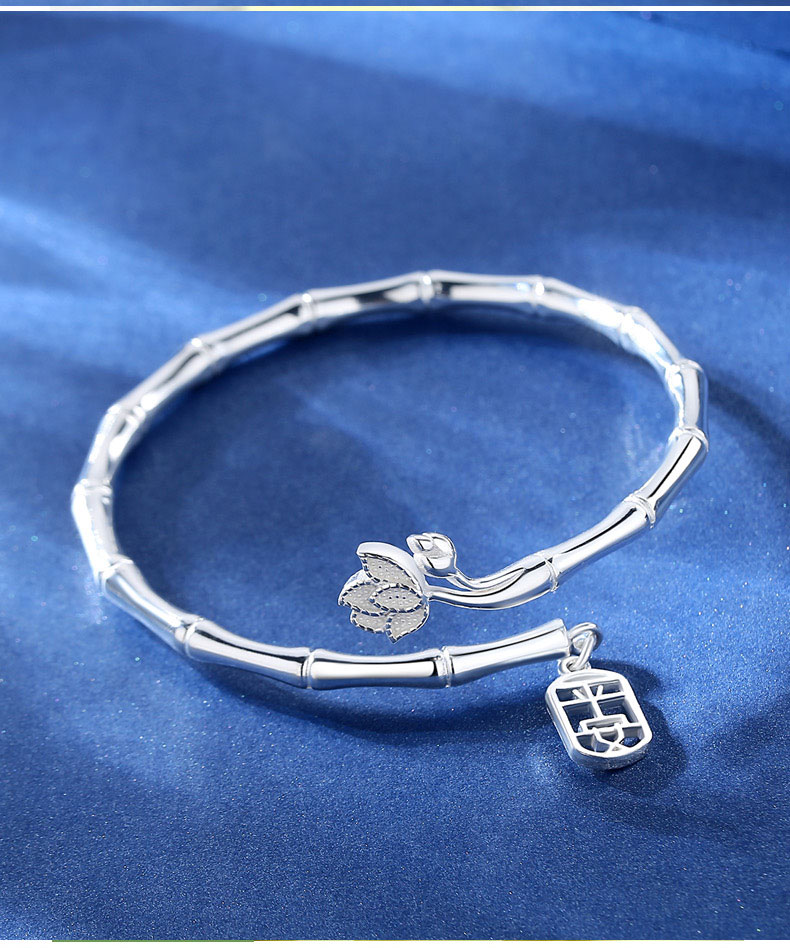 蘇州銀樓足銀手鐲 999竹節蓮花手鐲送女友禮物送閨蜜繁花銀手鐲