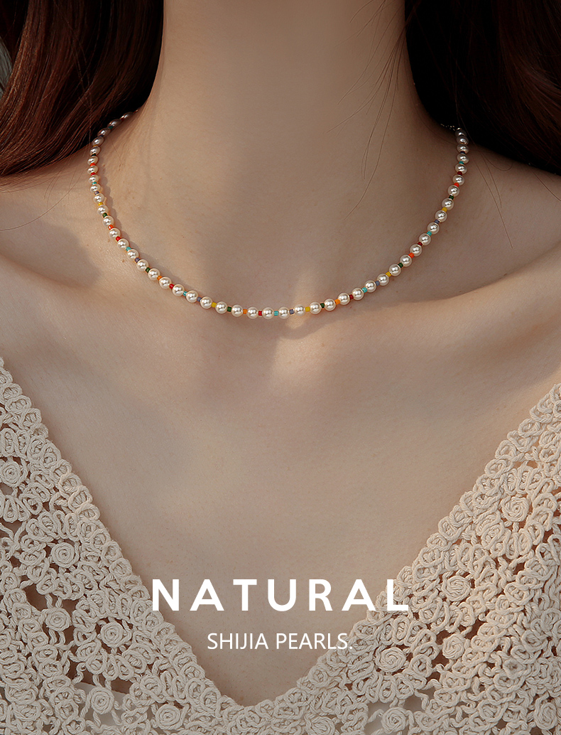 珍珠彩色串珠項鏈女款夏季配裙子的項鏈輕奢小眾頸鏈女高級感配飾