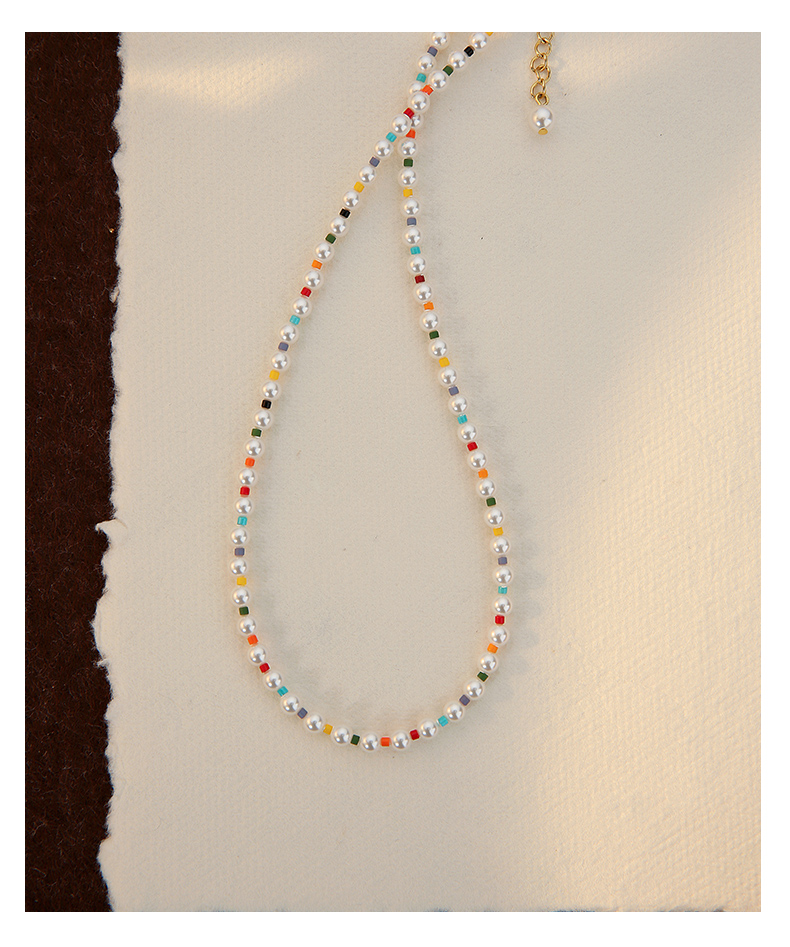憶愛小眾設計感珍珠彩色串珠鎖骨鏈