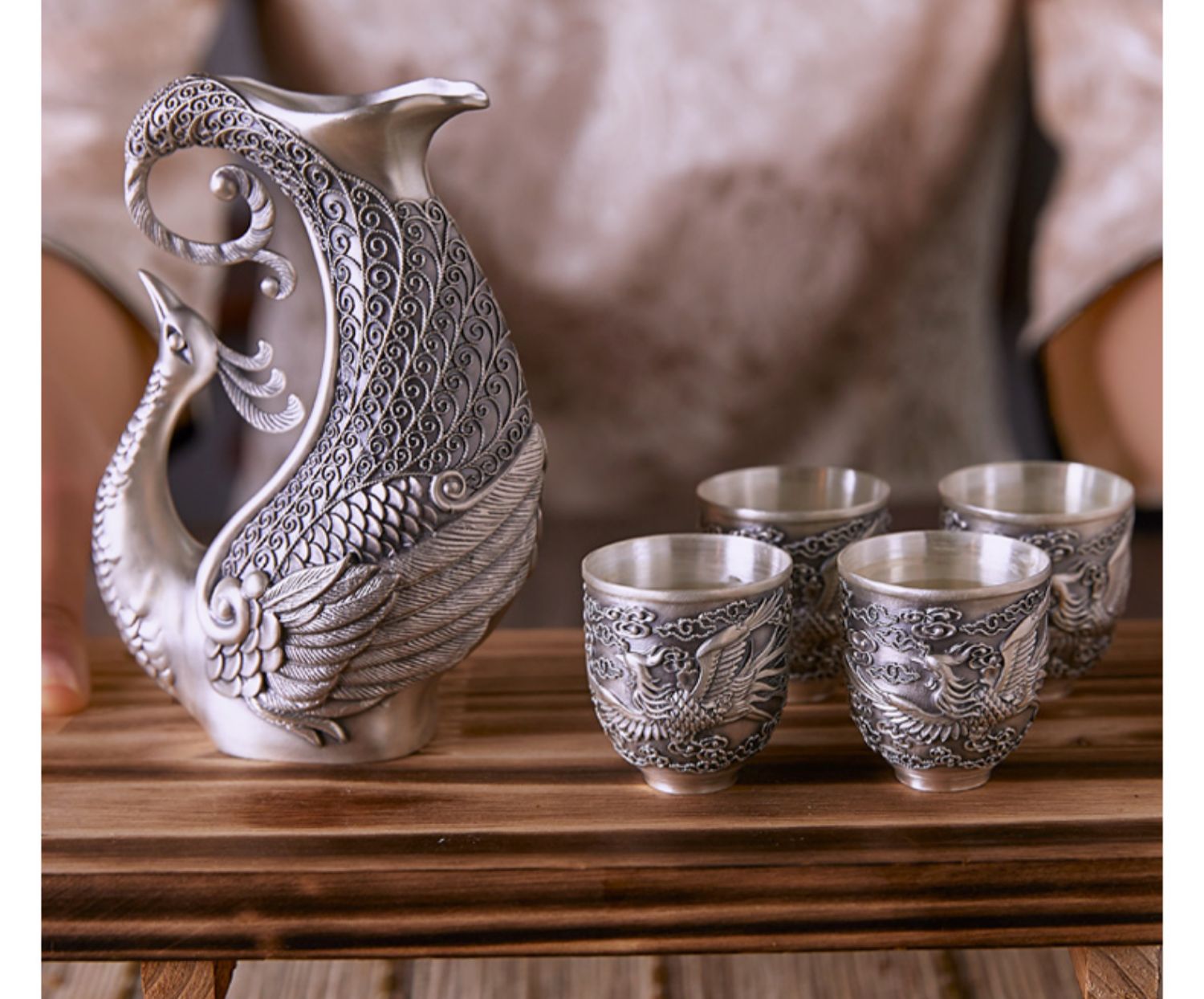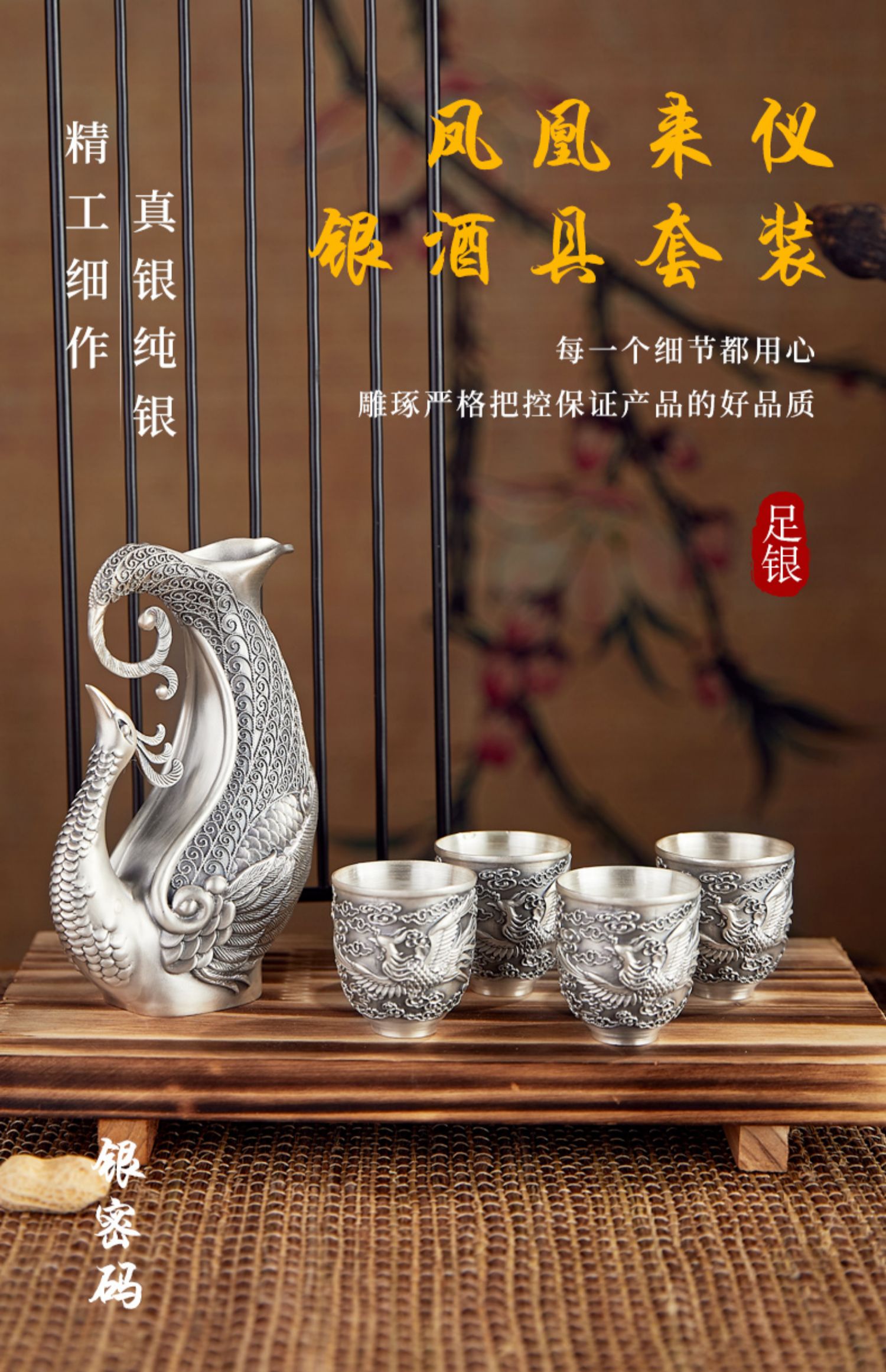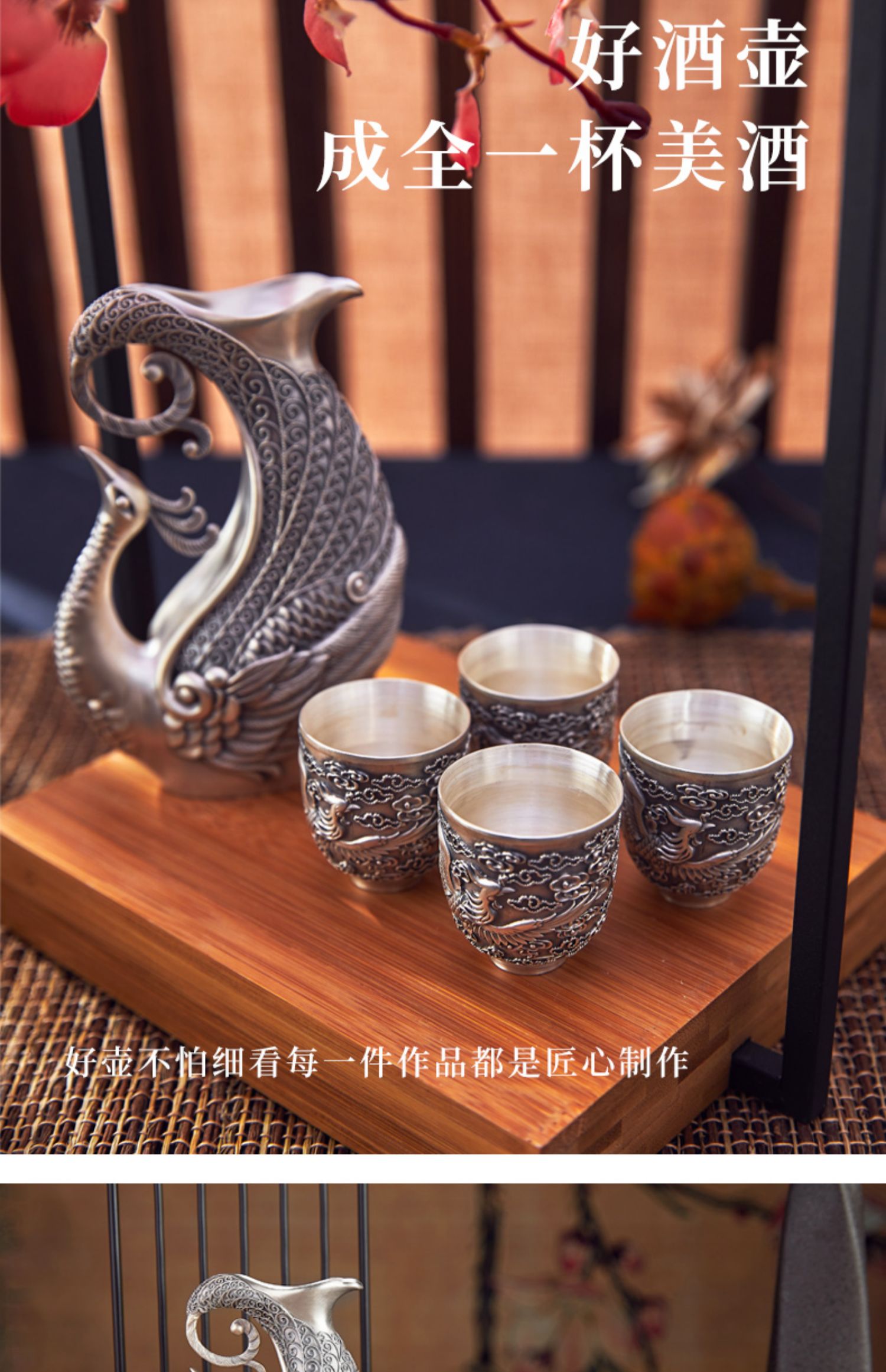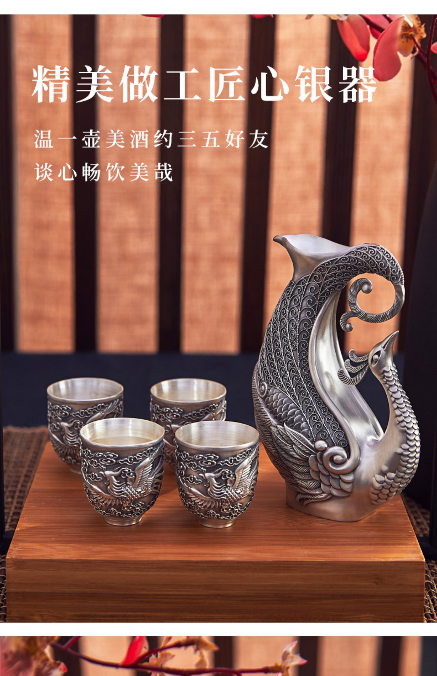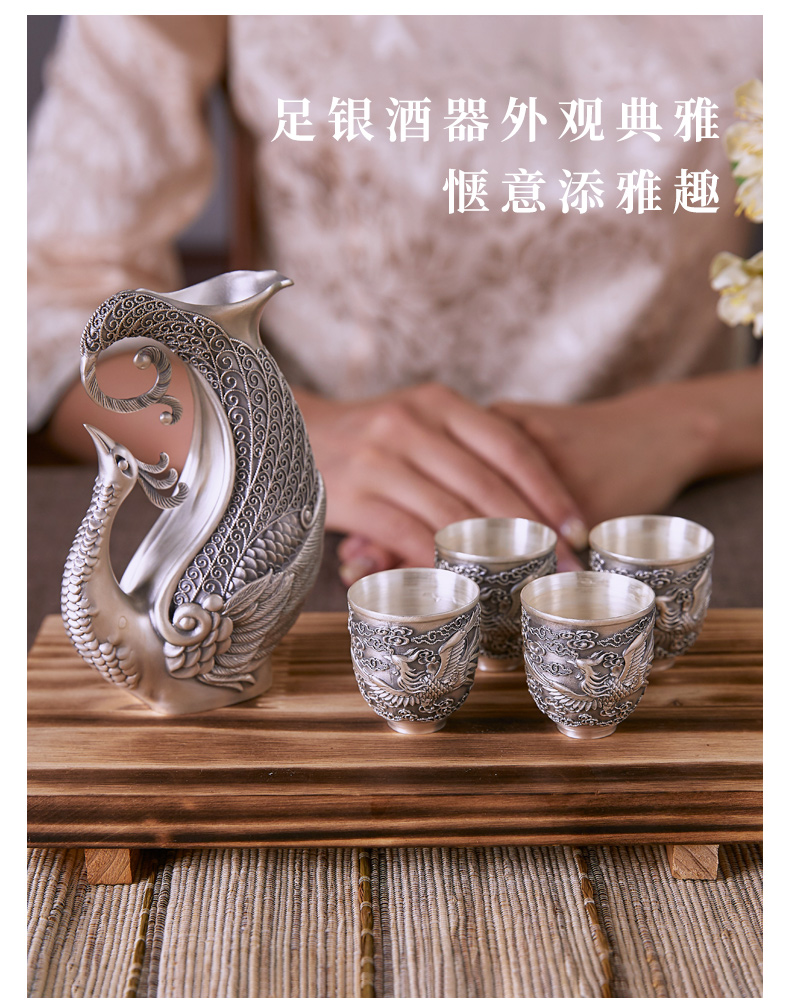 銀密碼純銀銀酒壺酒杯套裝仿古代中式雕花復古高級感擺件高檔禮盒