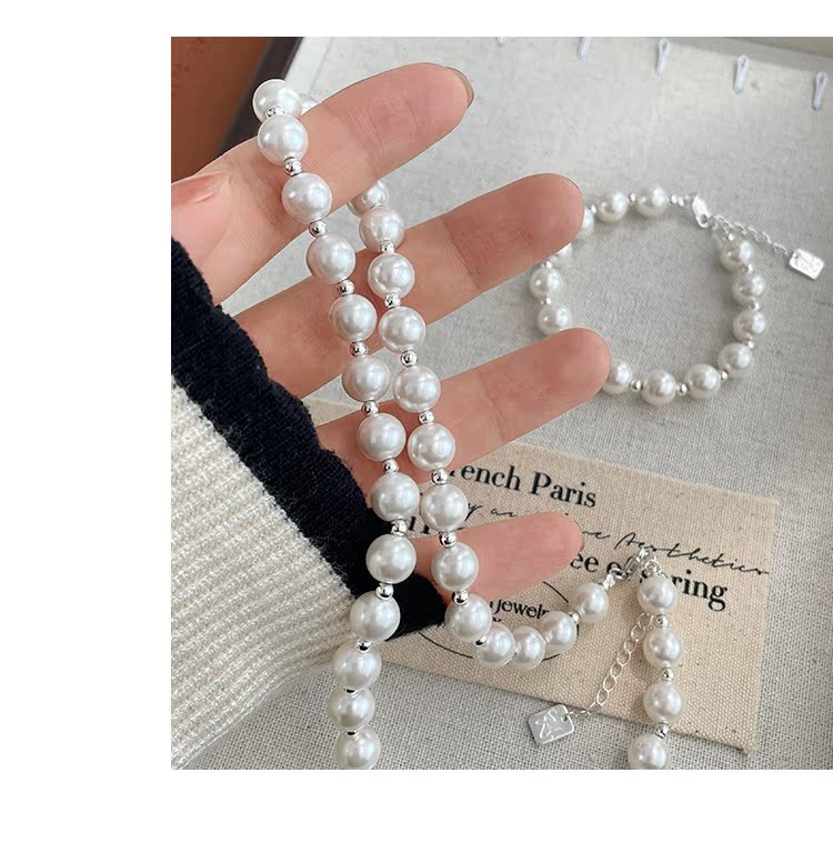 為晚S925純銀簡約銀珠施家強光珍珠項鏈女小眾輕奢高級感鎖骨鏈