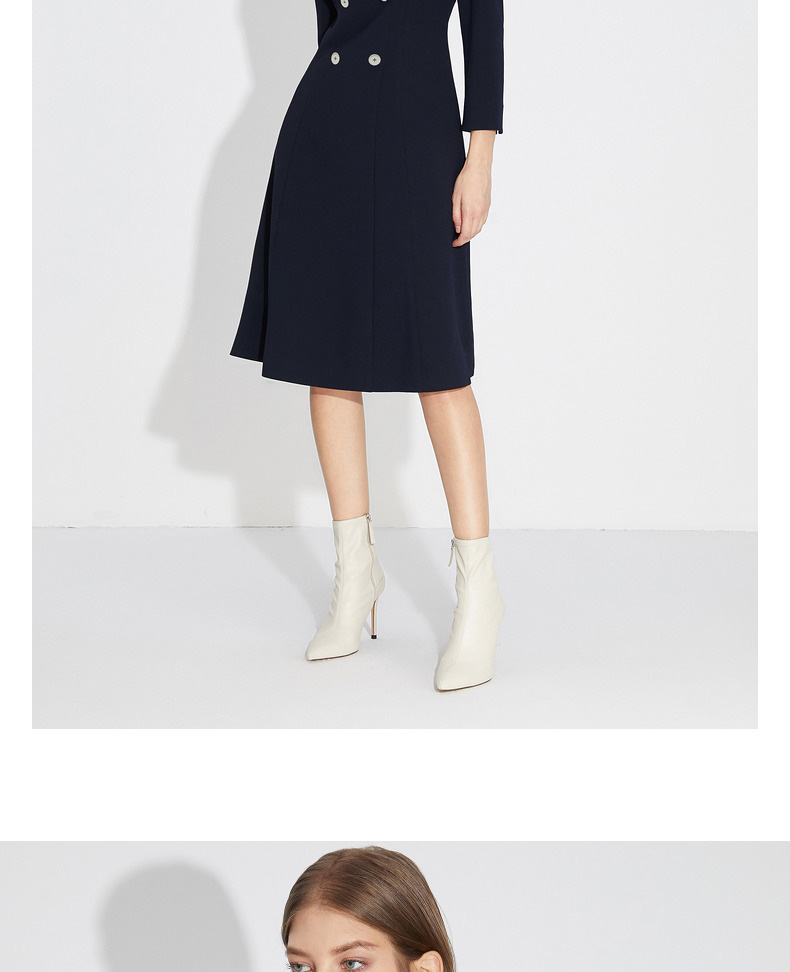 朗姿2023秋冬新款法式氣質西裝連衣裙女收腰顯瘦長袖商務中長裙子