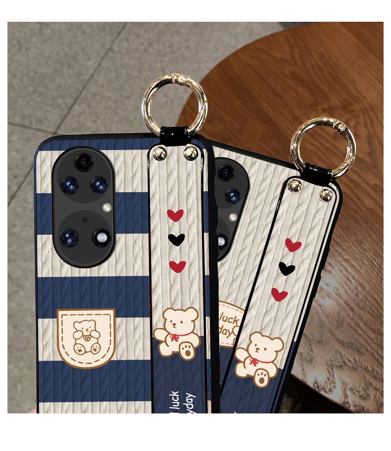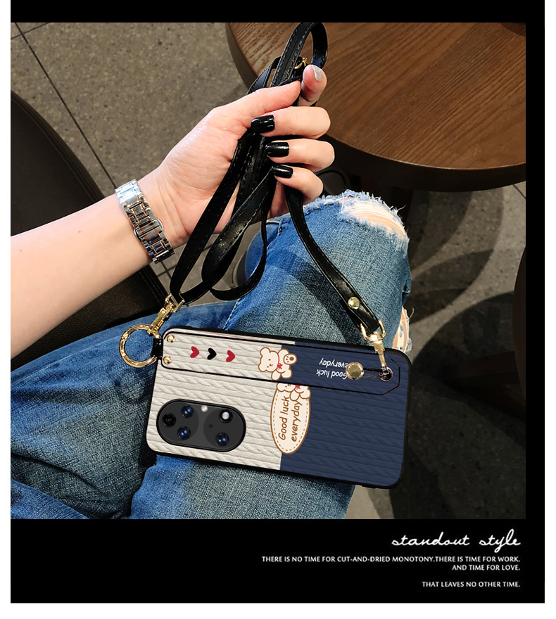 適用華為P60pro手機殼P50保護套P40pro+外殼p20PRO腕帶斜挎掛繩款P60Art版皮質感P30男女時尚HELLO熊支架情侶