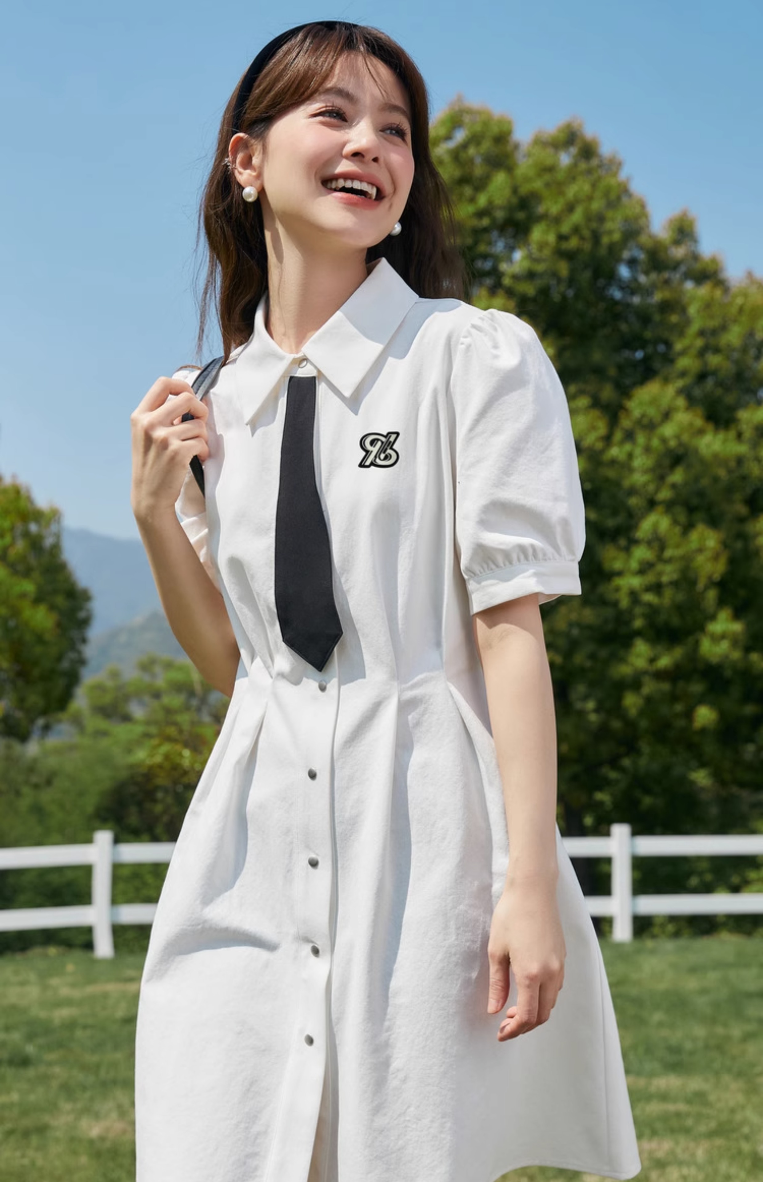 明星歐陽娜娜白色海軍領女夏連衣裙
