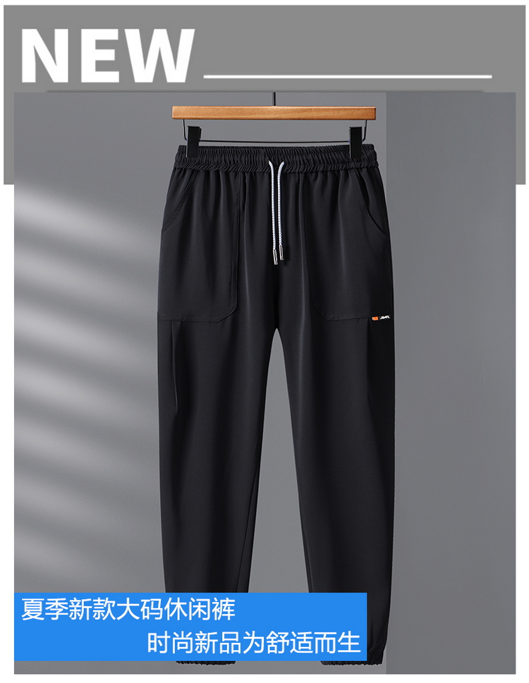 夏男士速干褲特大碼休閑褲加肥加大寬松直筒長褲冰絲薄款空調褲子