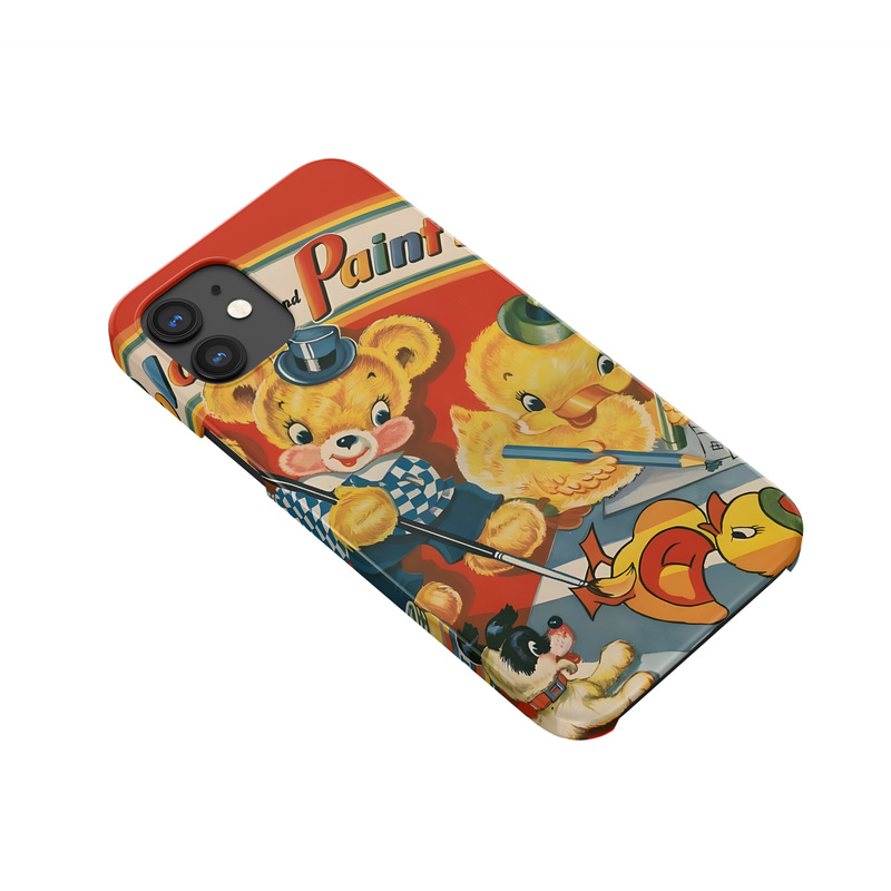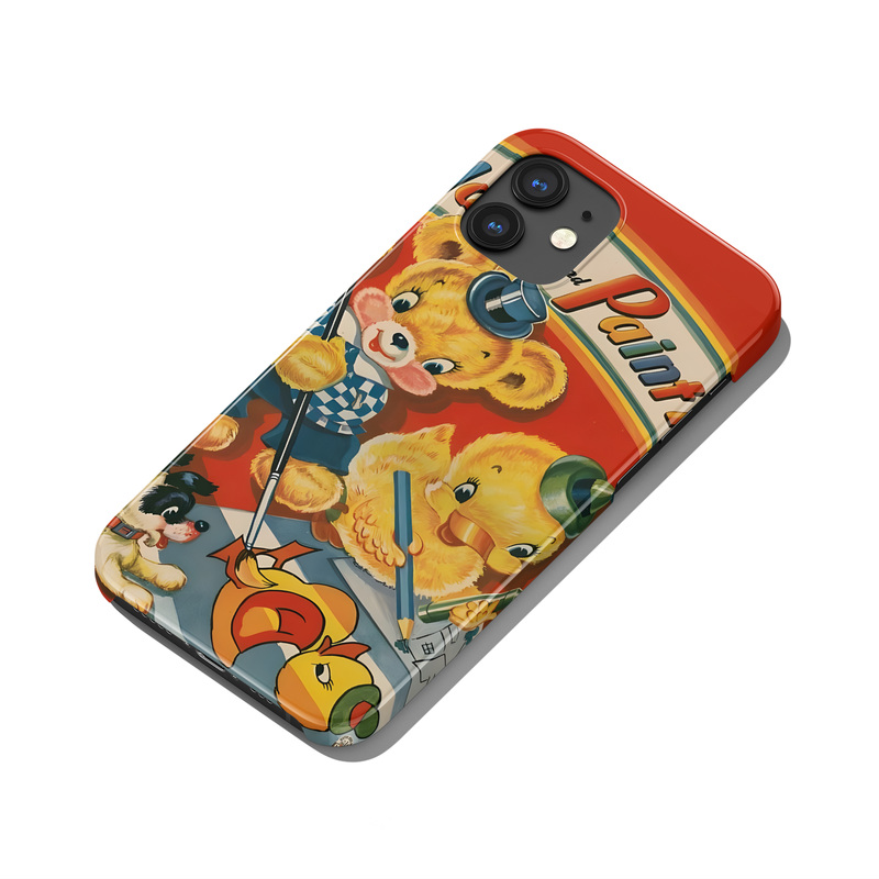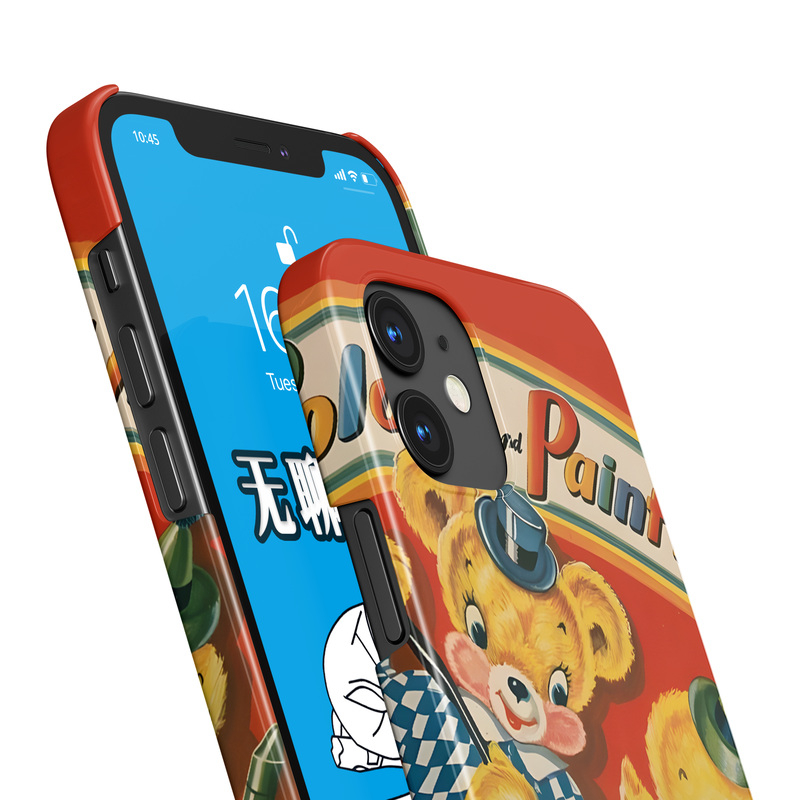VINTAGE小眾復古海報雜志小熊可愛卡通繪畫簡約潮流適用于蘋果IPhoneXs/XR/11/12/13/14promax菲林手機殼imd