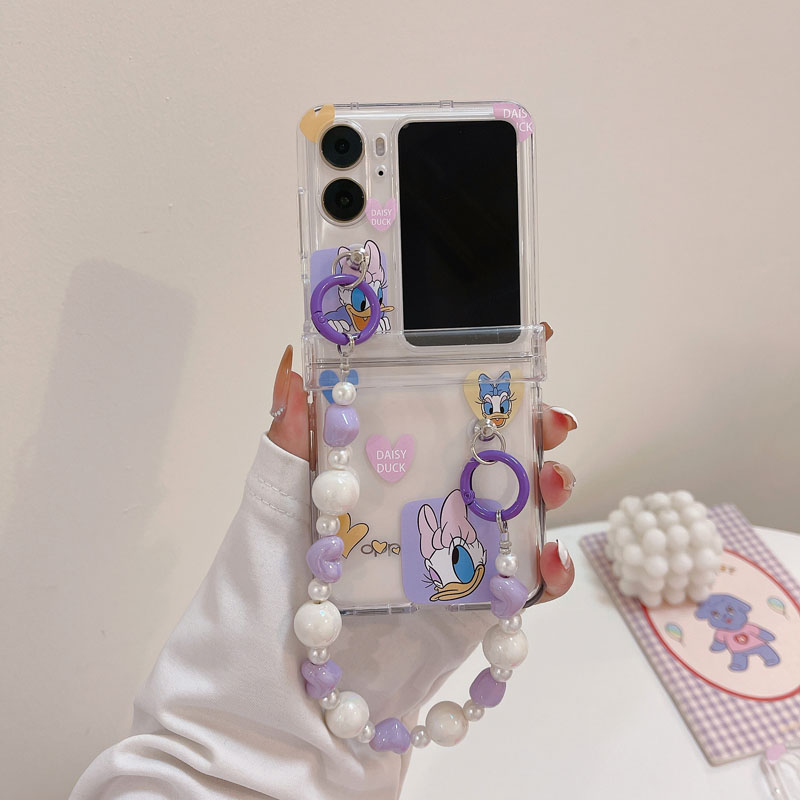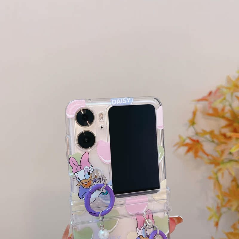 適用oppofindn2flip手機殼可愛ins風波點愛心唐老鴨黛西鉸鏈全包保護套短鏈手提繩n3flip折疊硬殼少女風3代