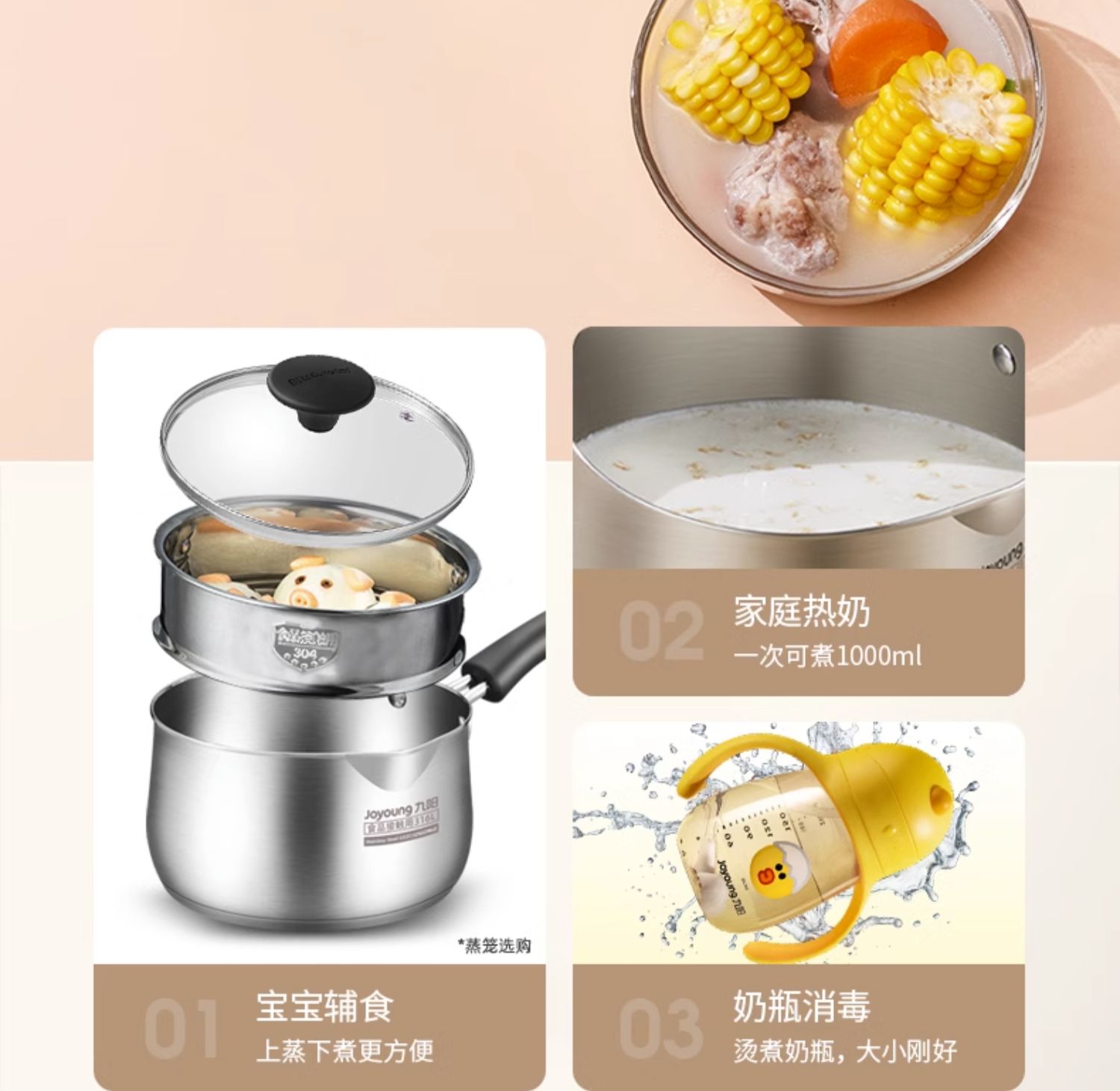 九陽寶寶輔食316l不銹鋼家用奶鍋