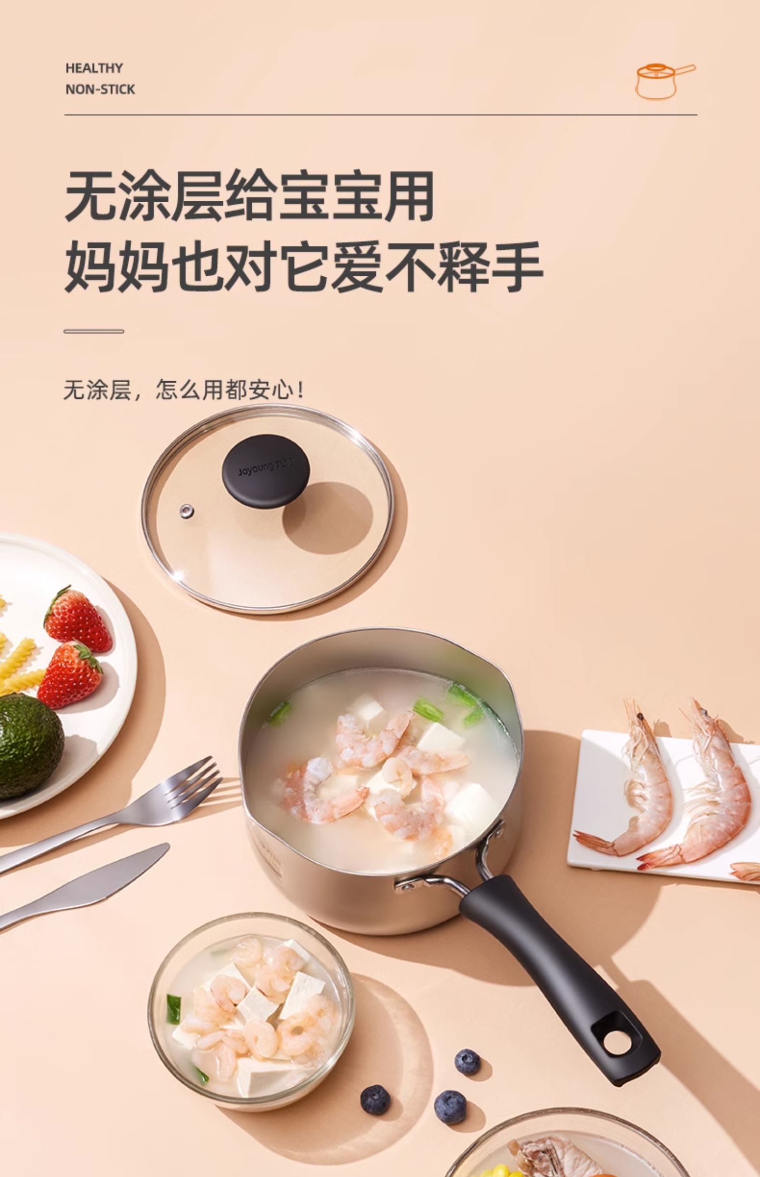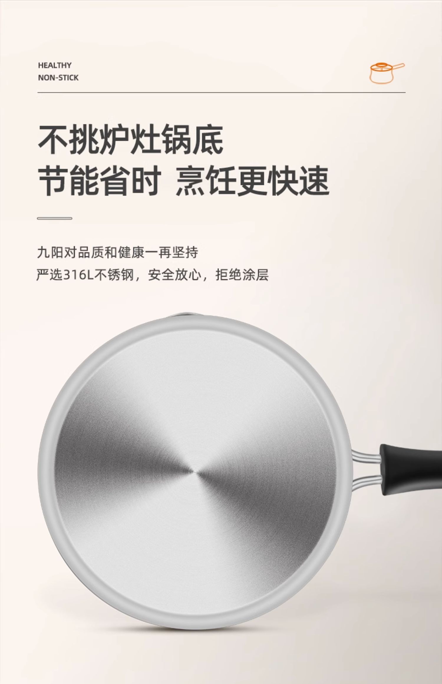 九陽奶鍋316不銹鋼寶寶輔食鍋泡面鍋熱牛奶小奶鍋嬰兒專用小湯鍋
