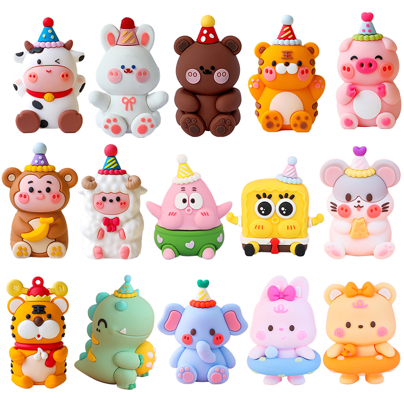 卡通立體小動物軟膠蛋糕裝飾小熊小兔老虎擺件兒童寶寶生日插件