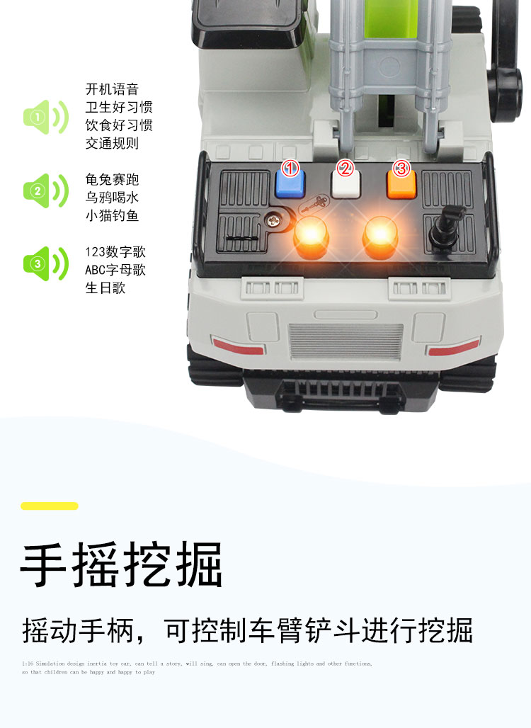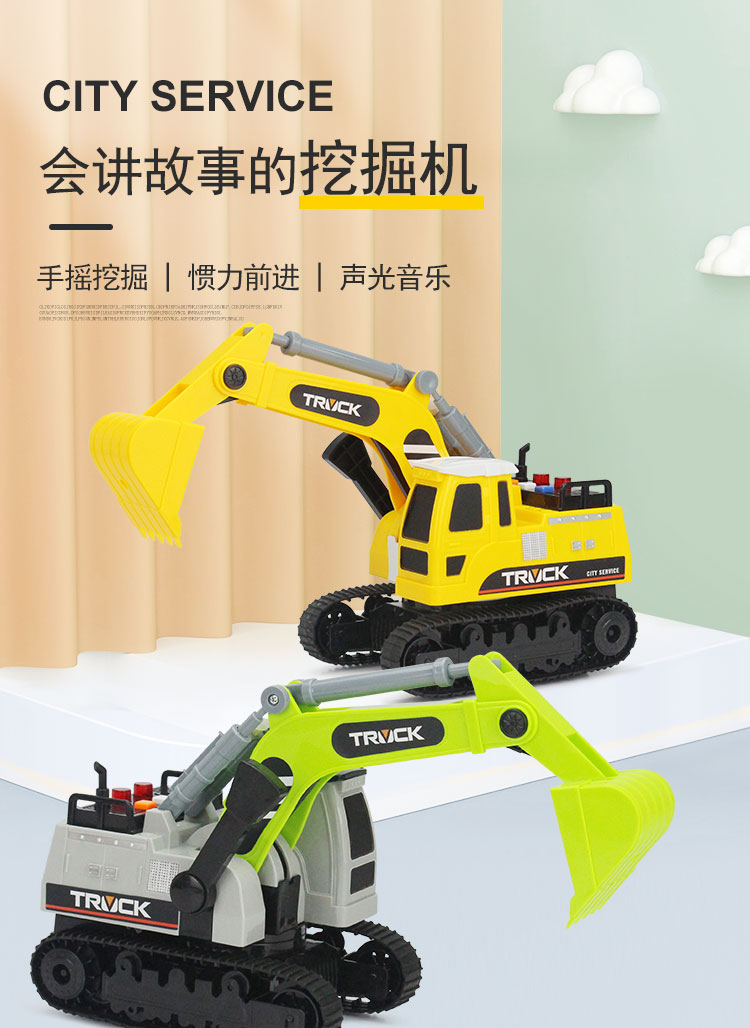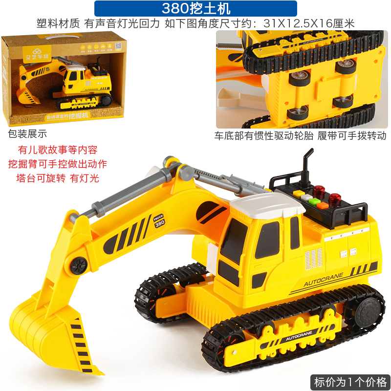文藝車玩兒童挖掘機玩具大號車故事機男孩講唱歌手動慣性工程汽車