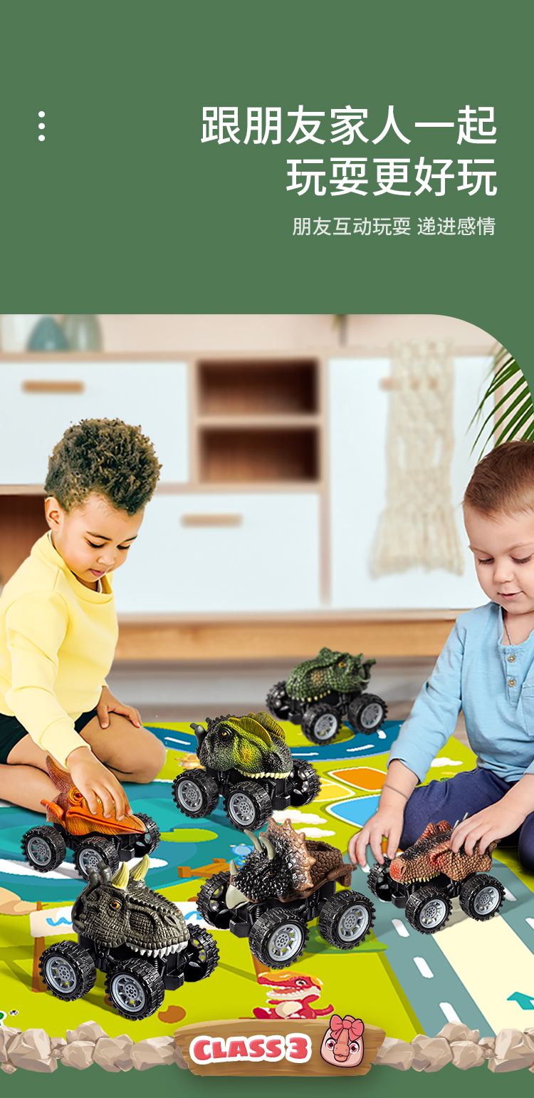 恐龍回力汽車慣性玩具車霸王龍兒童3男孩5仿真動物三角龍模型套裝
